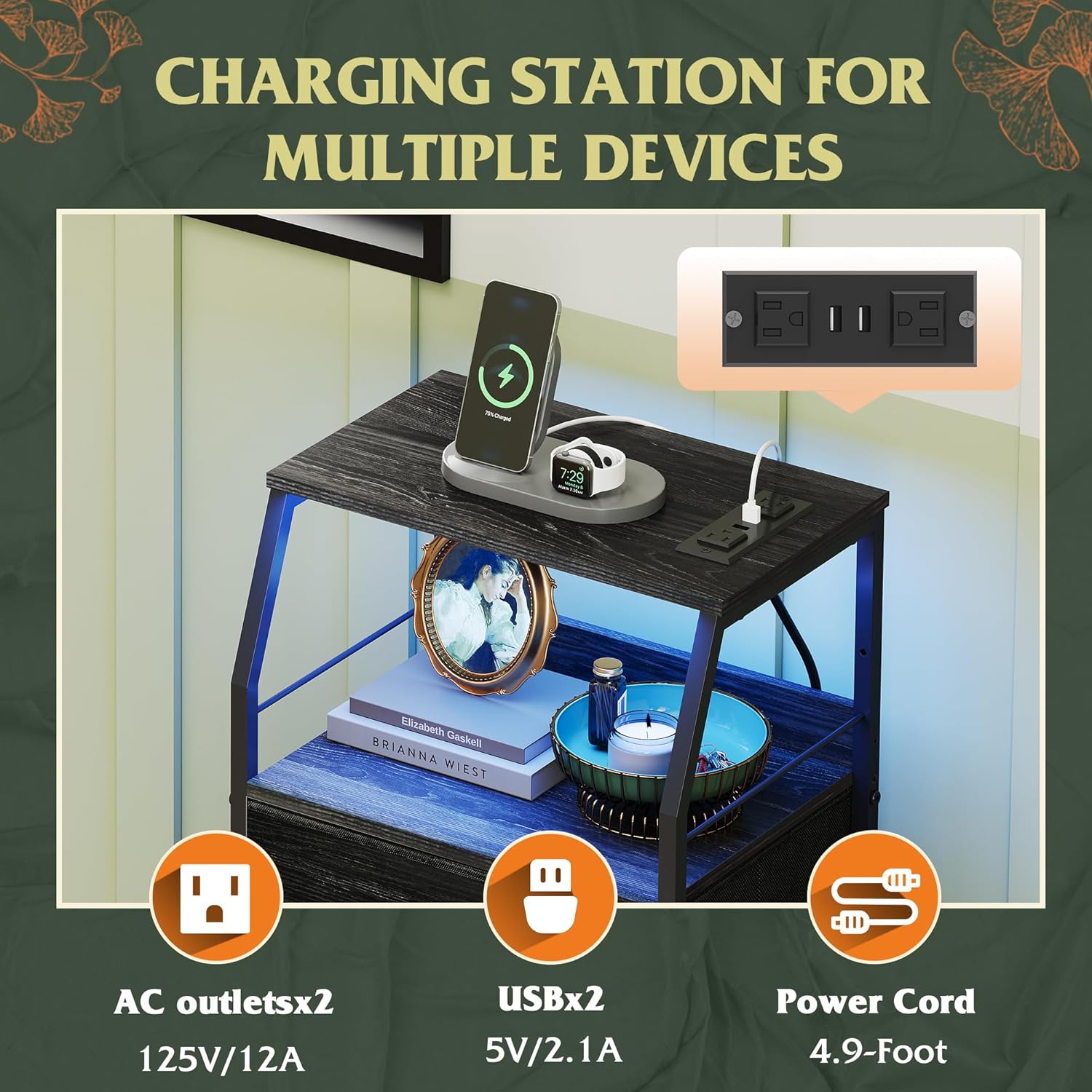 - [Night Stand with Charger Station]: The layout of the built-in power sockets is more convenient and user-friendly. It features a combination of 2 USB ports and 2 AC outlets to meet various charging needs. The charging station is ETL certified, so you don't need to worry about safety issues.