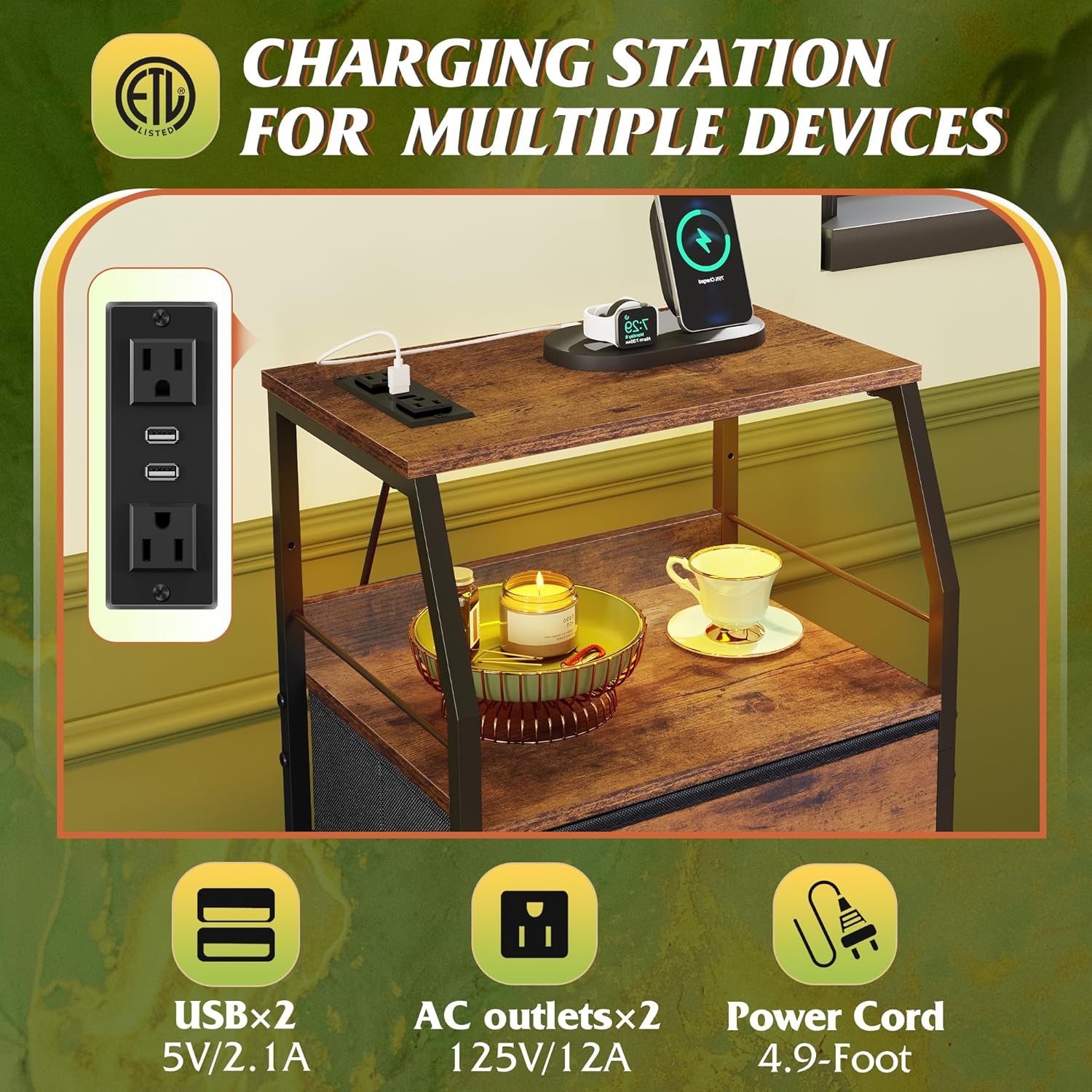 - [Night Stand with Charger Station]: The layout of the built-in power sockets is more convenient and user-friendly. It features a combination of 2 USB ports and 2 AC outlets to meet various charging needs. The charging station is ETL certified, so you don't need to worry about safety issues.