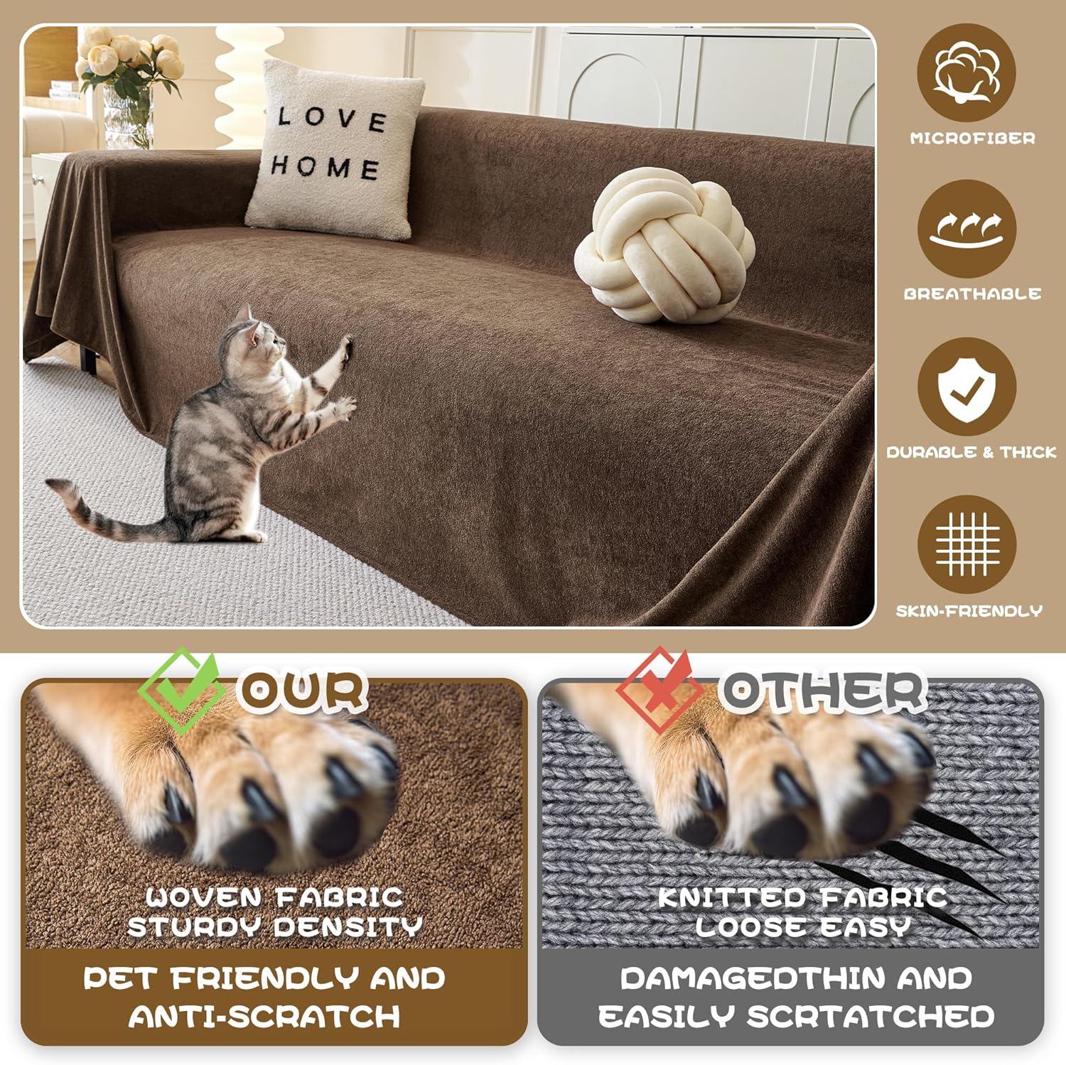 - HIGH QUALITY: Couch throw cover furniture protector is made of polyester fabric, super soft, tear-resistant, good drape, comfortable and durable. Suitable for all seasons and will not pilling or fading after washing.