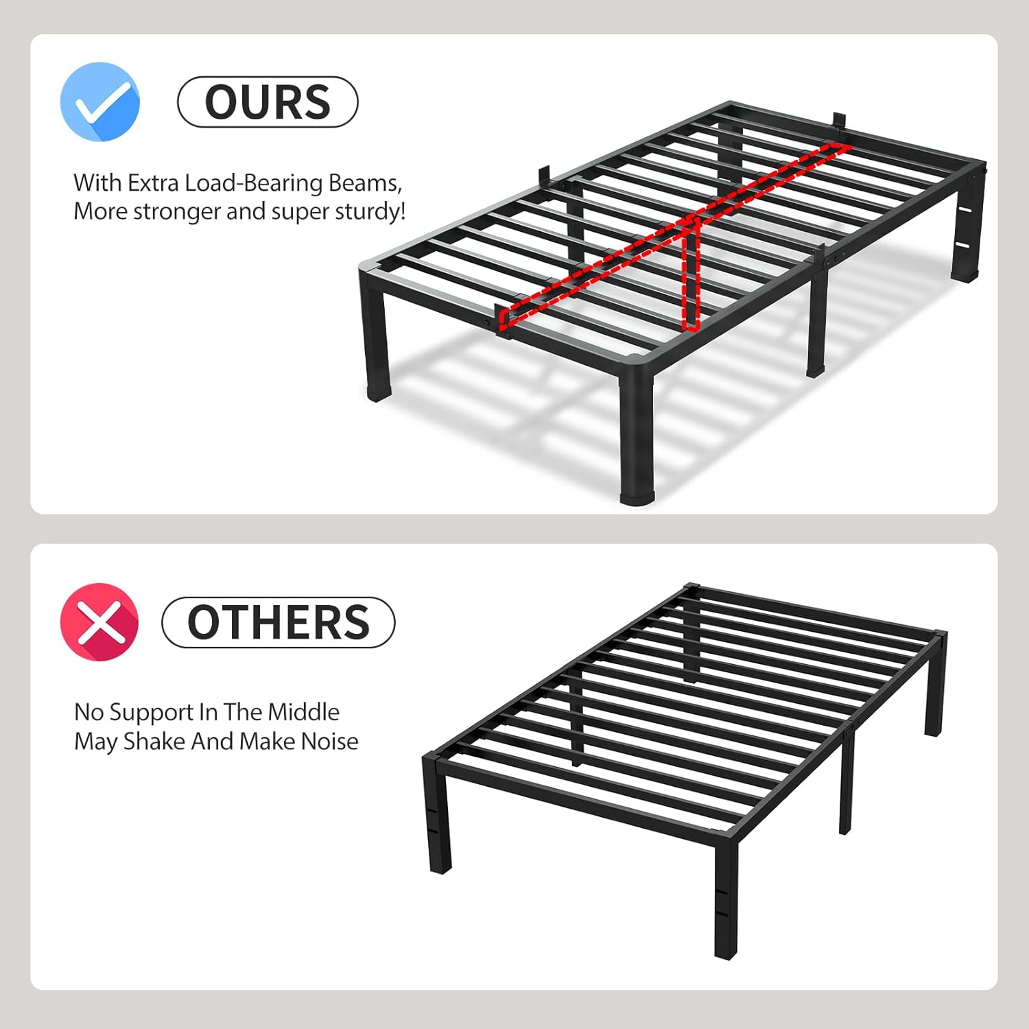 18 Inch Twin XL Bed Frame, 3500Lbs Heavy Duty Metal Platform with Round Corner Legs Mattress Slide Stopper, Steel Slat Support No Box Spring Needed, Noise Free, Non-Slip, Easy Assembly