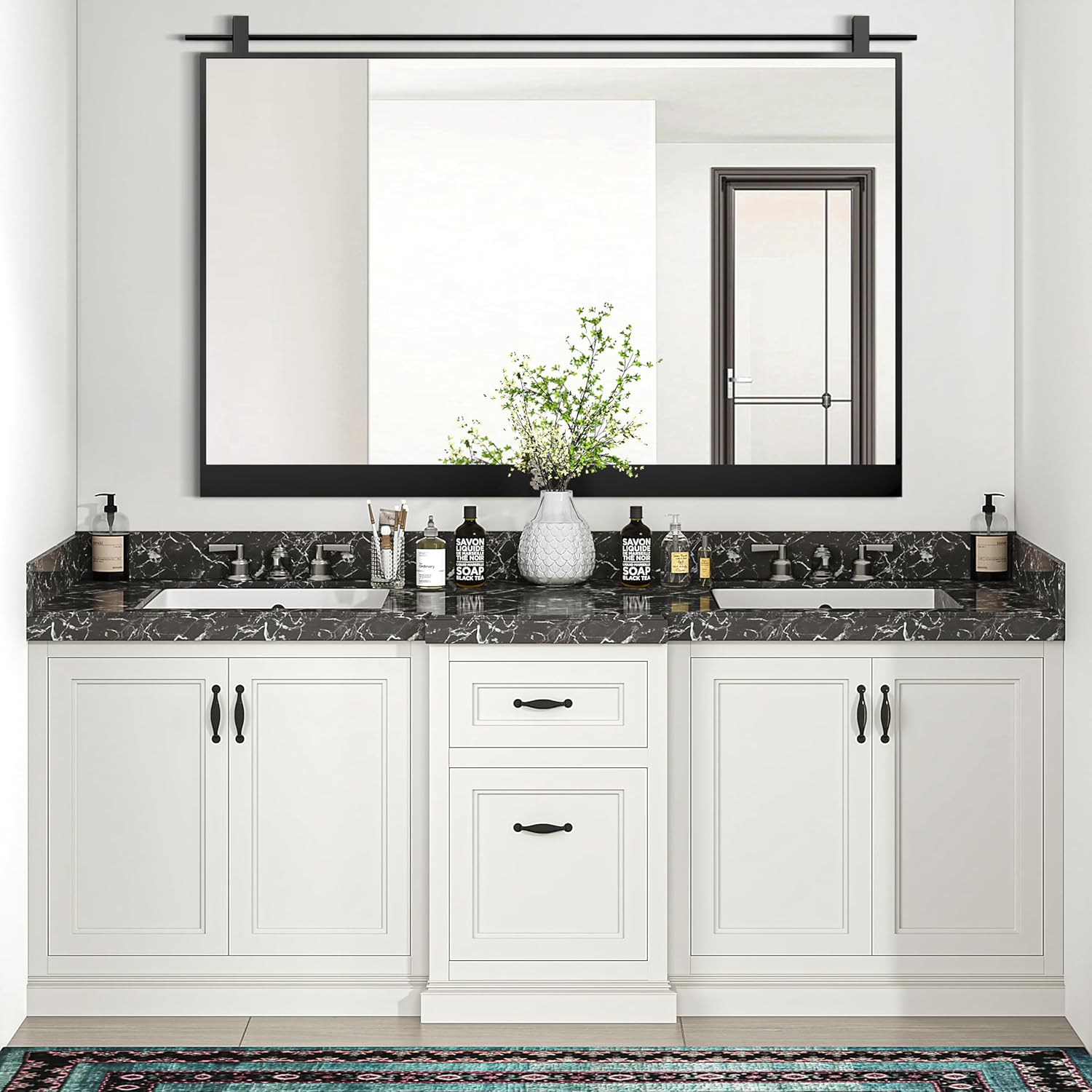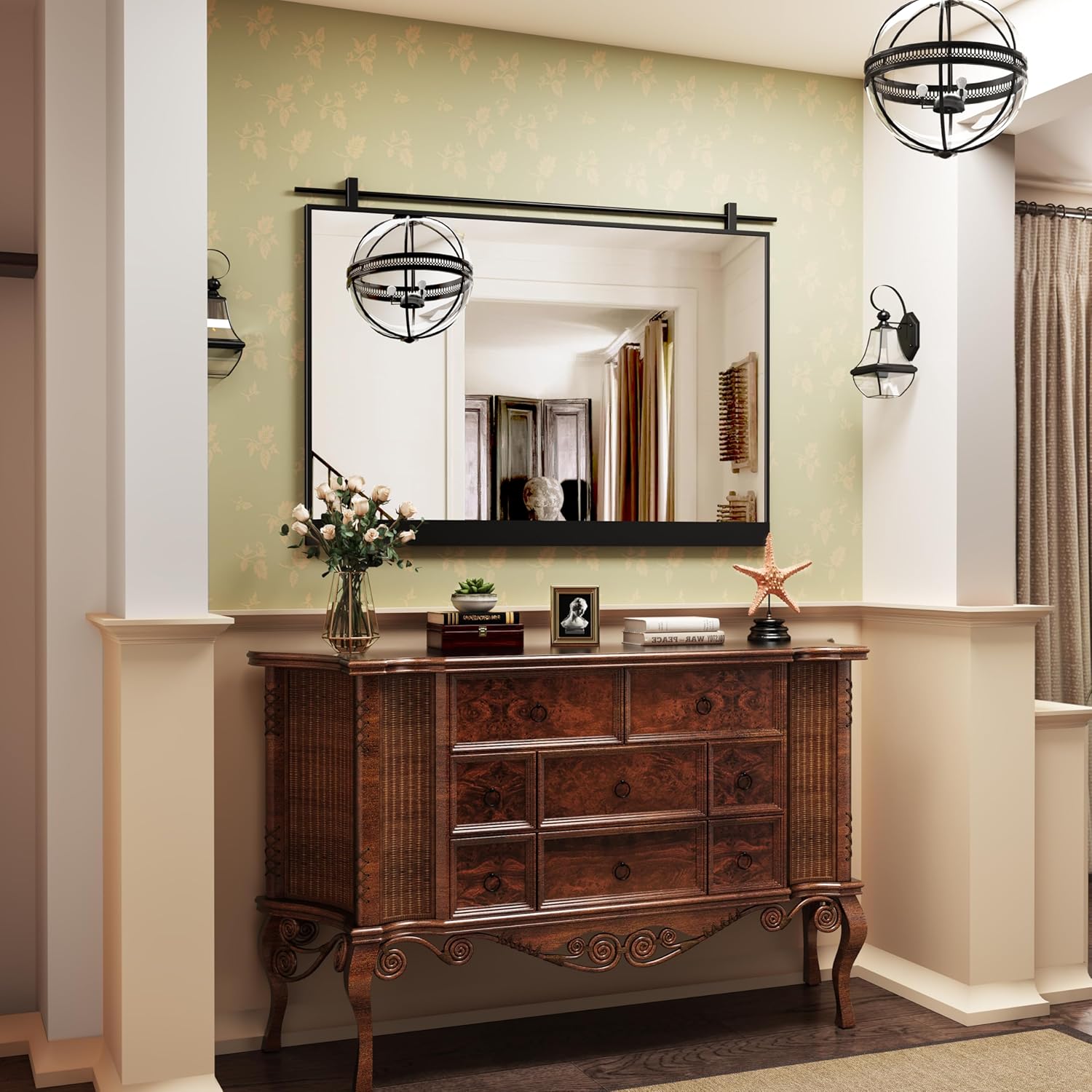 40x28 Inch Rectangle Bathroom Vanity Mirror for Wall Mounted Over Sink Farmhouse Rustic Matte Black Frame Barn Door Mirrors Foyer Entryway Decor