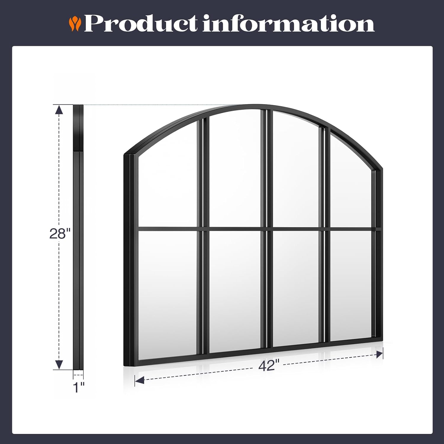 Wide Window Pane Mirror, 42" x 28" Black Arched Mirrors for Wall, Grid Wall Mirror Decorative Large Mirrors for Living Room Bedroom Farmhouse Fireplace Hallway Entryway
