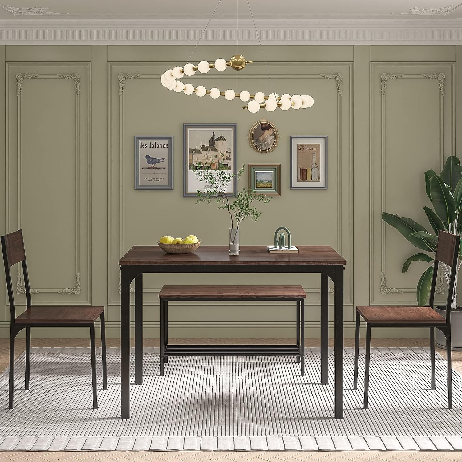 SogesHome 4-Piece Dining Table Set for 4 - Space-Saving Kitchen Set with Bench and Chairs, Ideal for Restaurants and Coffee Shops, Dark Walnut