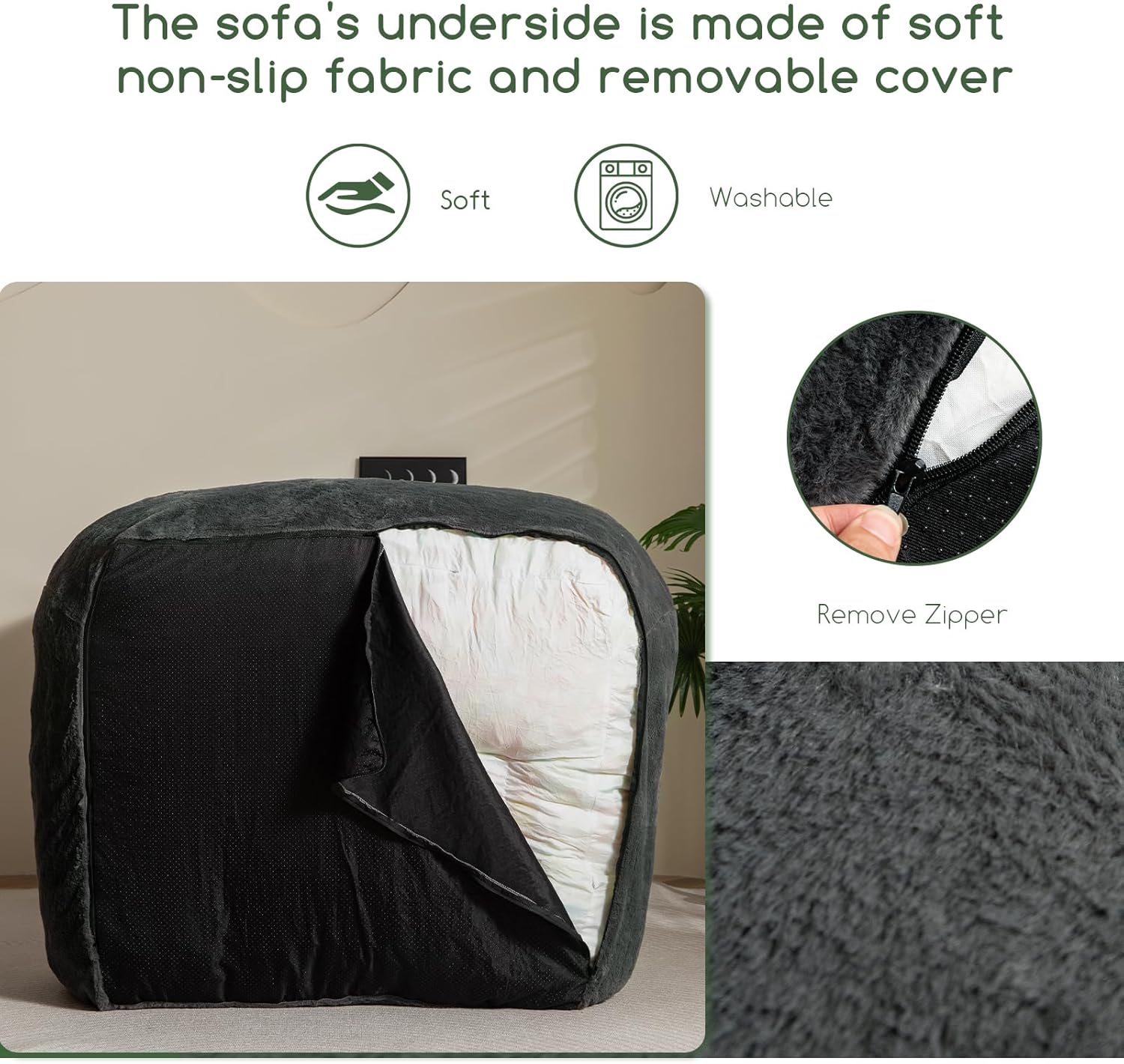 - Ergonomic Design - With an ergonomic backrest and two large armrests, the HIGOGOGO bean bag sofa provides the perfect support for sitting, lounging, or even gaming. The sofa's underside is made of soft non-slip fabric that fits snugly against the floor