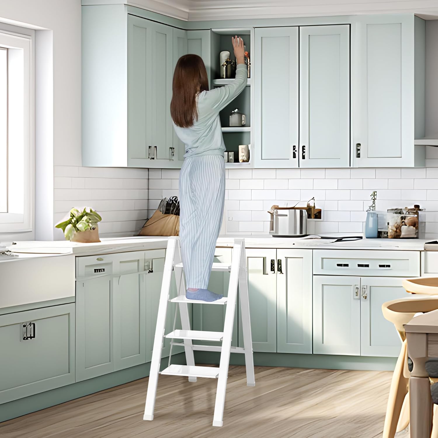 4 Step Ladder, Portable Folding, Lightweight Step Ladder with Anti-Slip Pedal, Aluminum Indoor Ladder and Closet, Kitchen, 330lbs - White