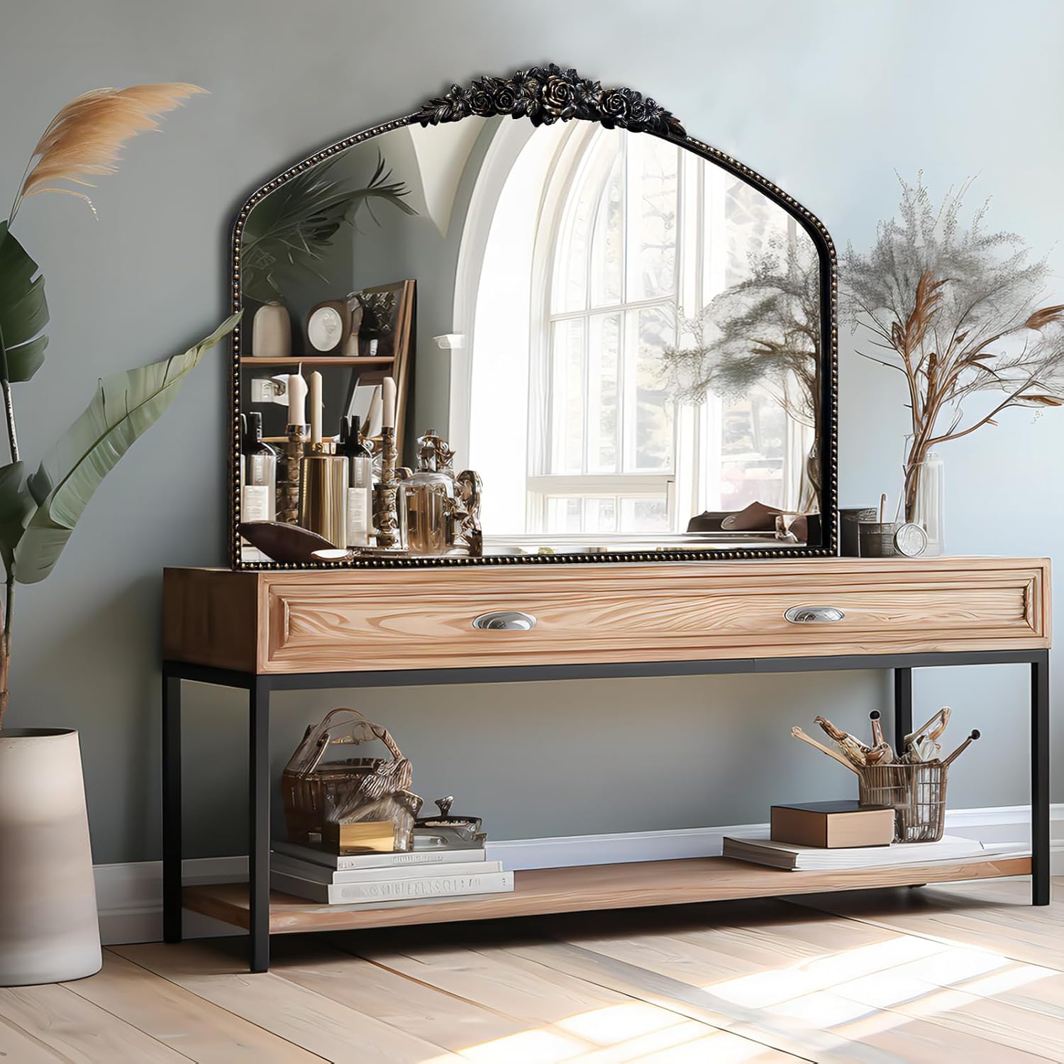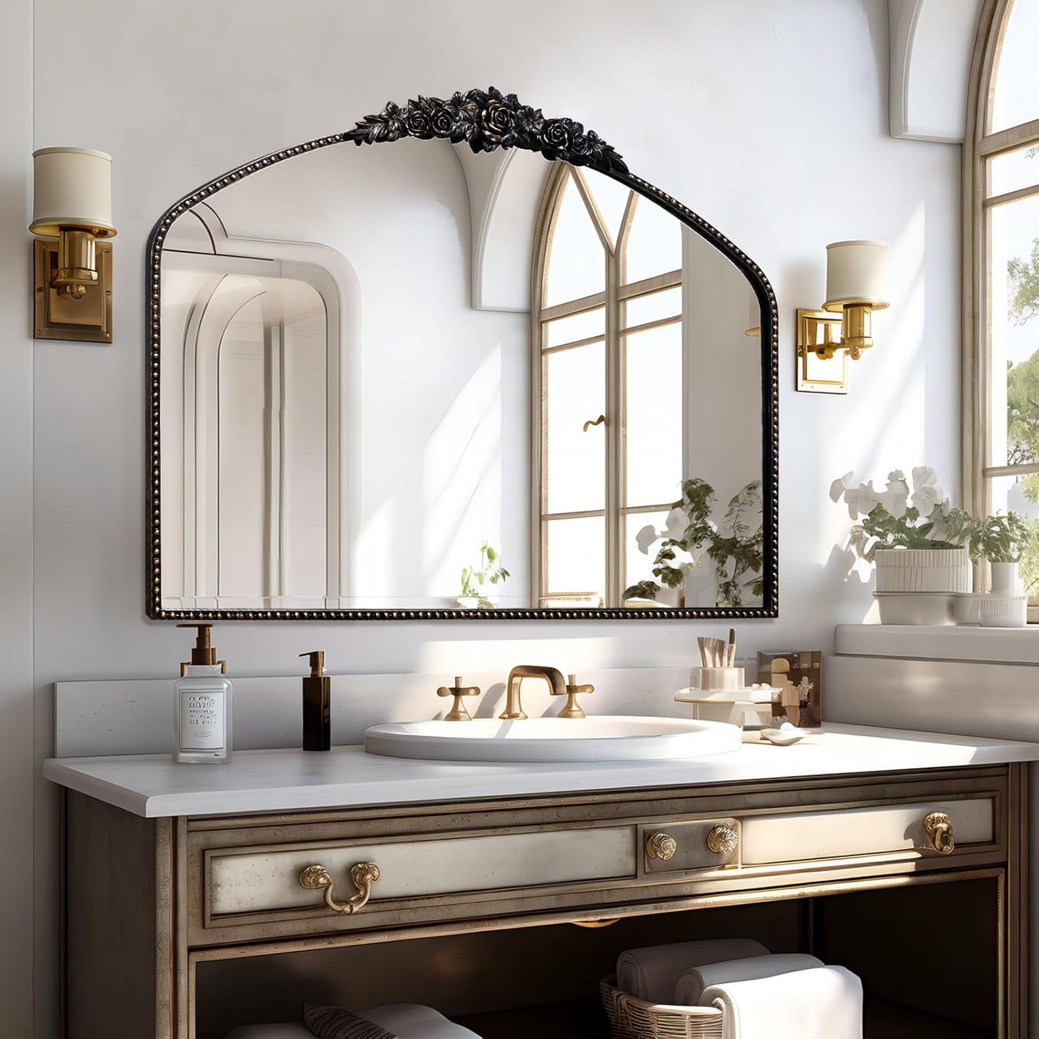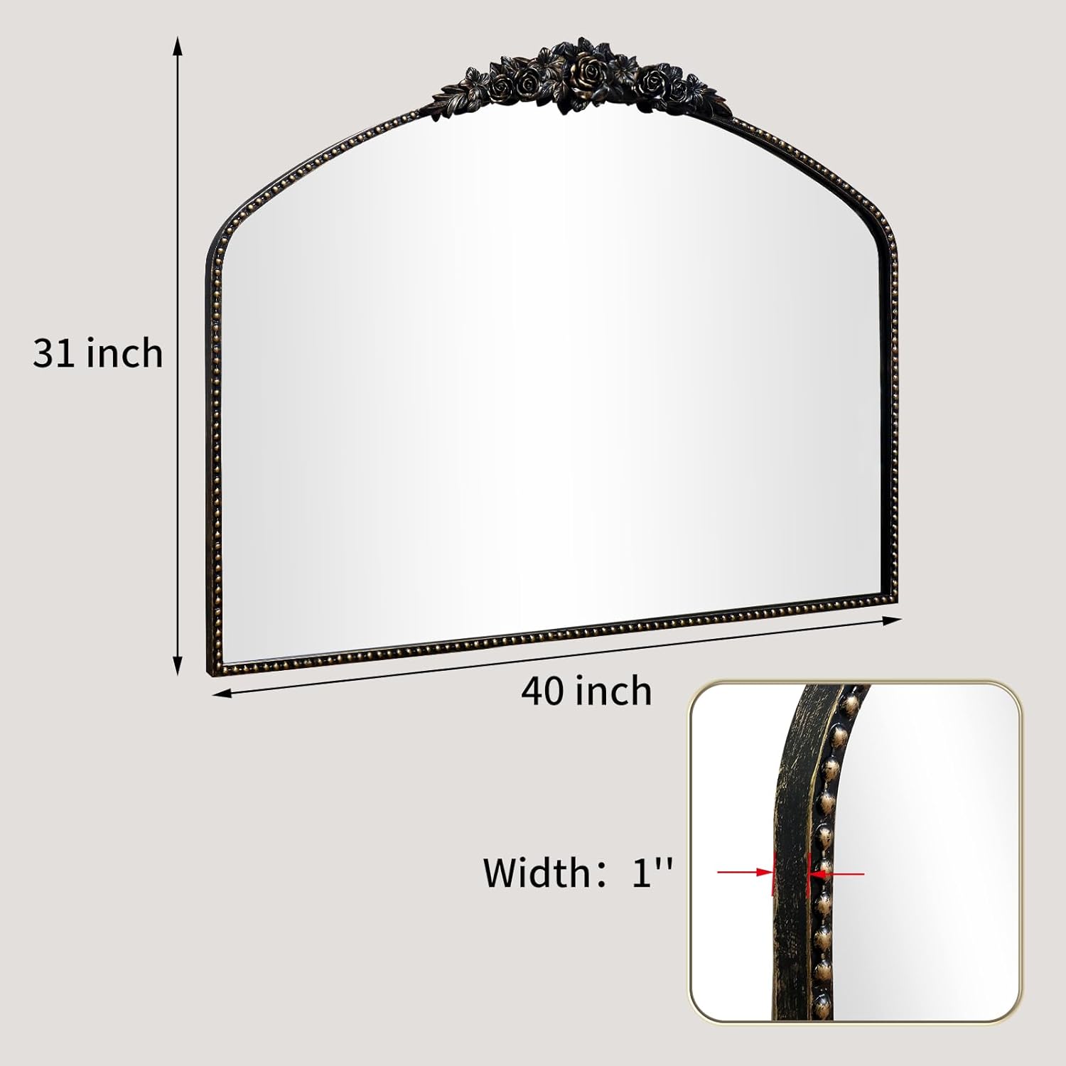 - 【HIGH QUALITY WALL MIRROR】The 40 x 31 inch vintage mirror frame is made of high quality metal, cast iron vintage engraved patterns, hand polished to make the vintage arched large wall mirror smooth and flat. The metal frame not only adds to the aesthetics, but is also strong, rust-resistant, and resists warping, making the arched wall mirror surface less prone to damage.