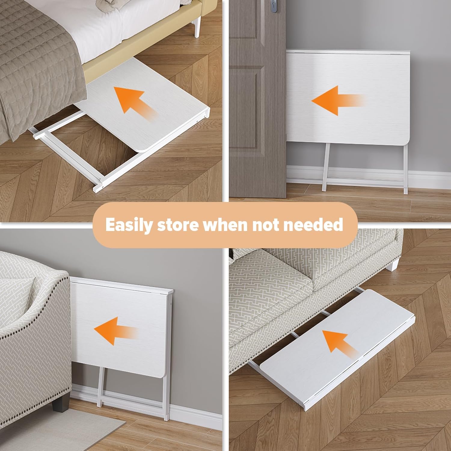 - 【Hided Foldable Desk】Foldable table dimensions is 2.76"D x 31.5"W x 29.52"H when it is folded up, only 2.76" width, very slim to store easily behind a door, under the bed or couch, side of refrigerator, small coner space, or RV etc. when not in use, keeping the tidy of the room. The portable desk is sturdy; Also can take it away for a travel with your family(easy to disassemble so can adapt more types of car space).