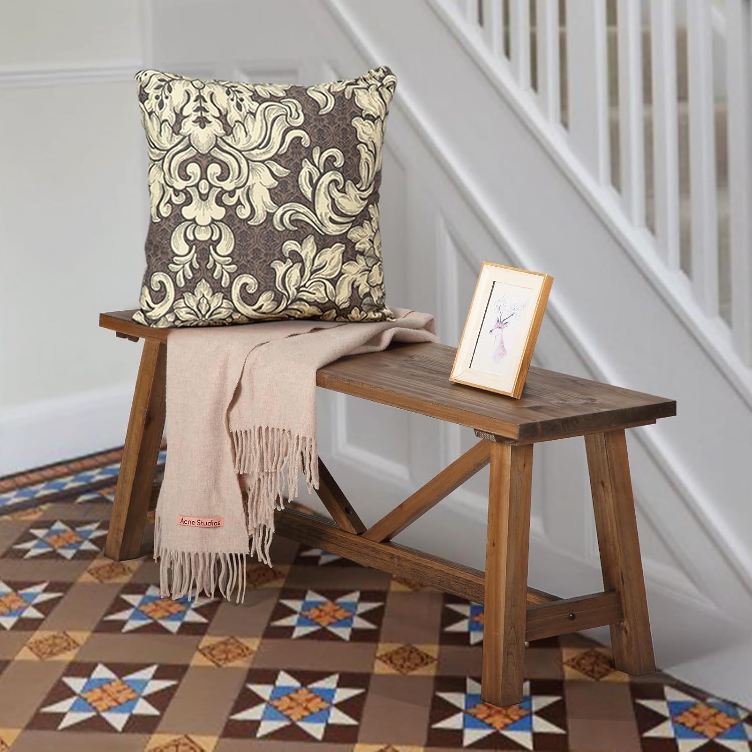 - 【Solid Wood】The entry bench is handcrafted of solid wood which are thick and durable enough to strongly support the end itself and stuff on it. And the handcrafted finish is not only durable for long service time, natural, making it more safer