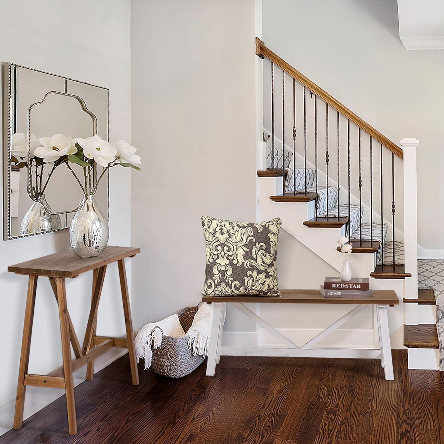 - 【Long Wood Bench】This wooden bench seat has a simple farmhouse design that can be amplified by cushion pillows and woven fabric. So take a load off and relax on this decorative bench. A small piece of furniture that make a big difference to give your home an instance refresh