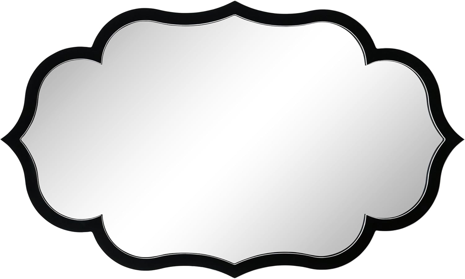 Empire Art Direct Curved Scalloped Wall Mirror on Black Matte Frame with Washed White Edges, Living Room, Bedroom & Office, 24" x 40" x 1"
