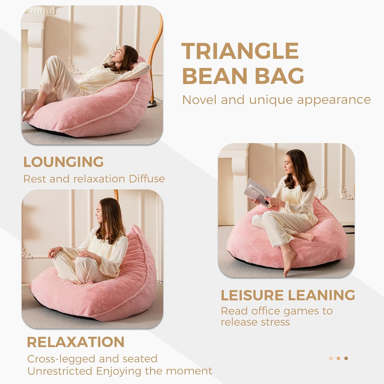- ăPerfect Living Room Accessoriesă: The base of the bean bag chairs is made of non-slip particles fits very well with the floo. The fluffy beanbag chairs are simple and generous in appearance and can be integrated into various home decor styles. Bring you a relaxing and comfortable experience while decorating your home.