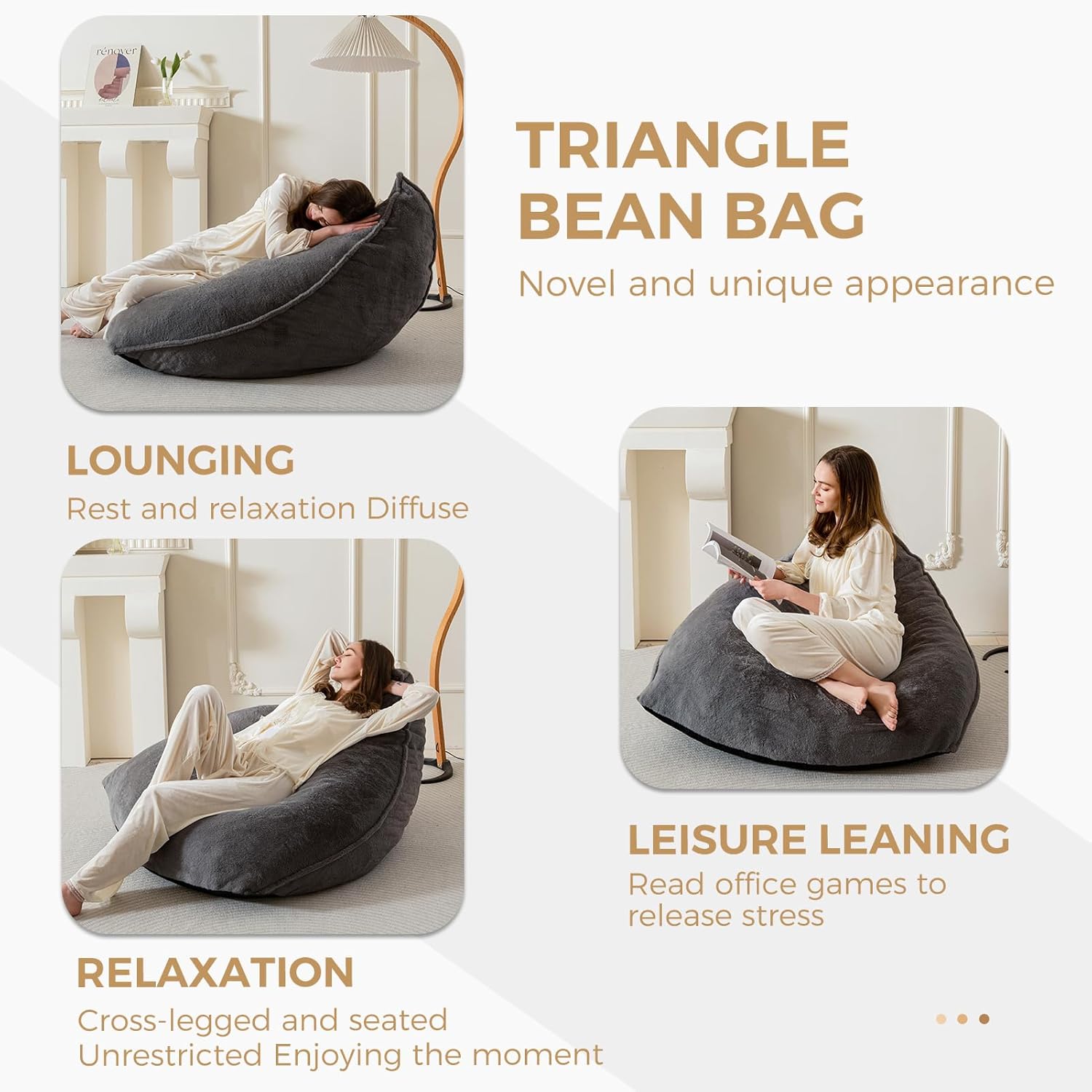 - ăPerfect Living Room Accessoriesă: The base of the bean bag chairs is made of non-slip particles fits very well with the floo. The fluffy beanbag chairs are simple and generous in appearance and can be integrated into various home decor styles. Bring you a relaxing and comfortable experience while decorating your home.