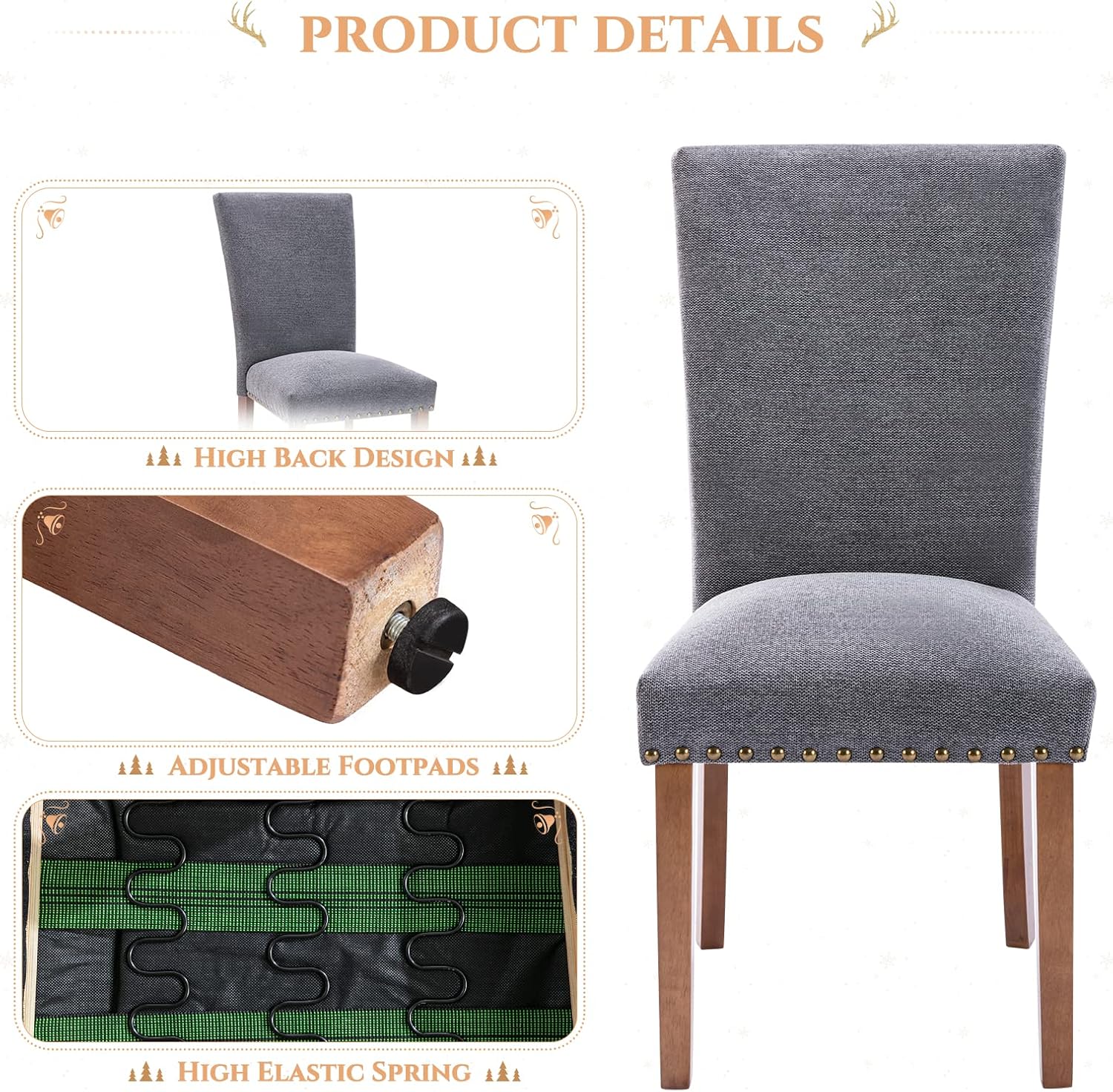 - Used for Years to Come: Sturdy dining chairs supported by solid rubber wood legs that can hold up to 250 lb each, adjustable feet for extra stability, and a chic look that makes it a nice add-on to your dining room or bedroom.