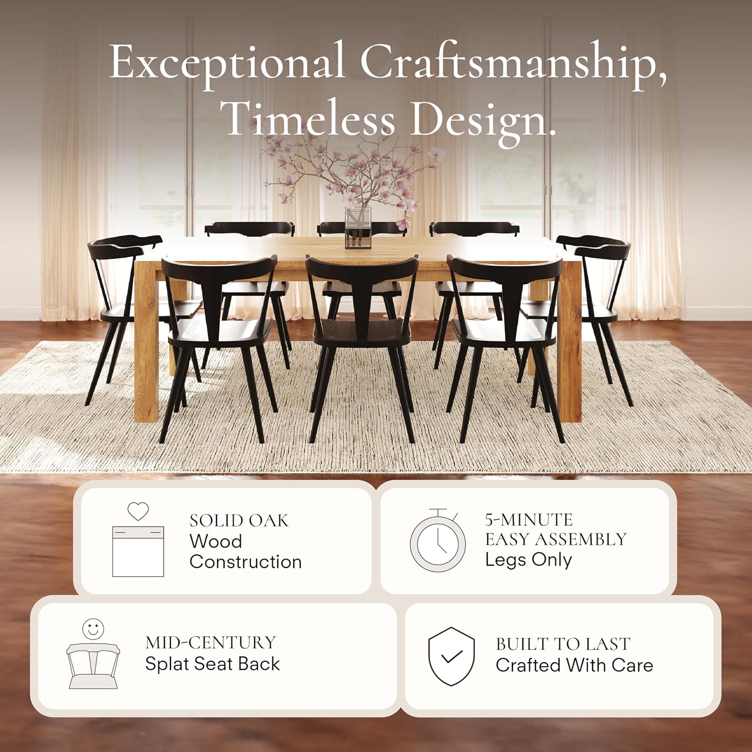 - Built With Purpose, Styled for Life: Crafted from solid oak with a durable painted finish and non-scratch floor caps, the black kitchen chair set of 4 is made for everyday moments and special occasions alike. It’s lightweight yet sturdy, practical yet beautiful, everything a dining chair should be.