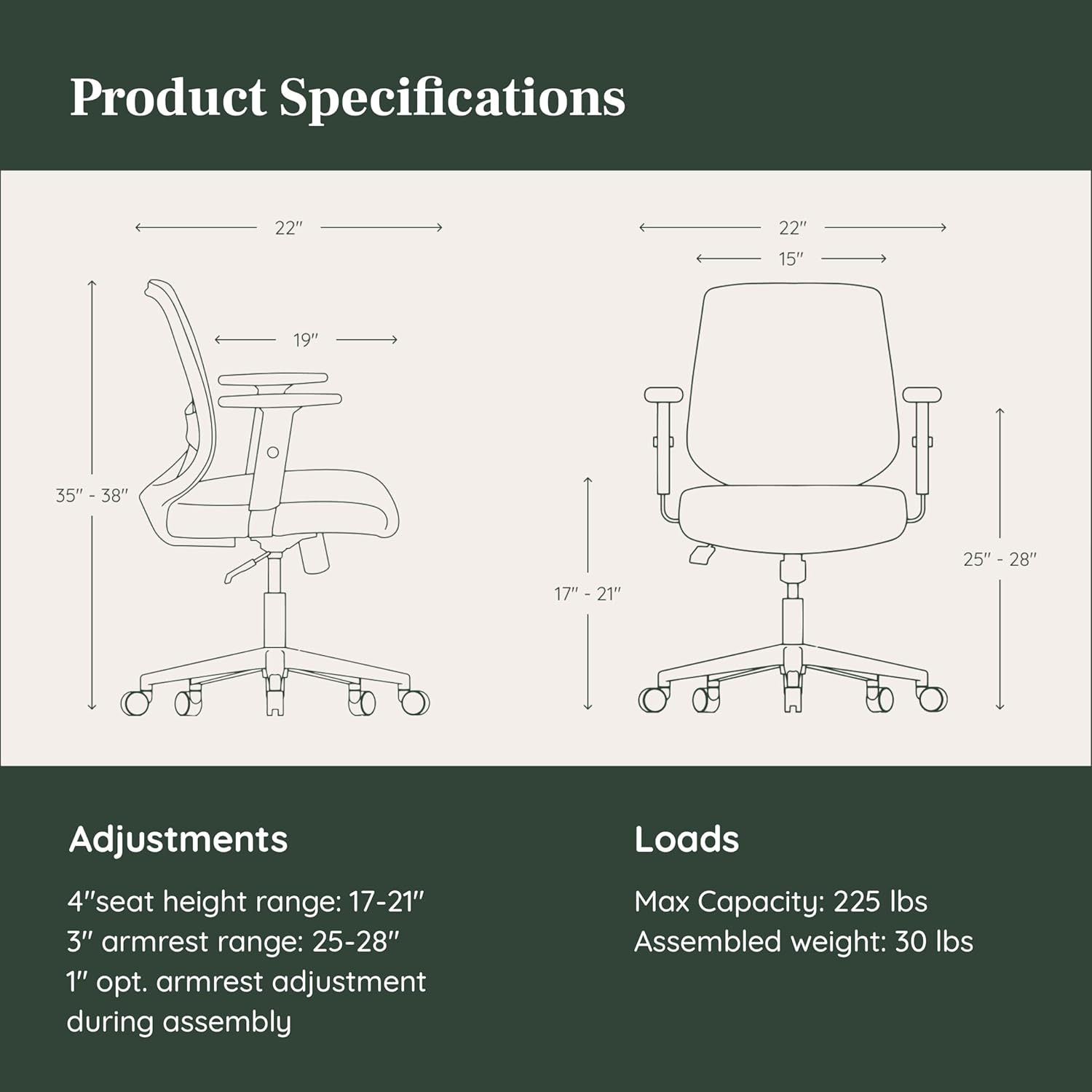 - SIMPLE ERGONOMICS: Our Daily Chair provides light lumbar support to promote upright posture, making it ideal for people between 5'0" - 5'11". This affordable office desk chair is perfect for comfortable all-day productivity.