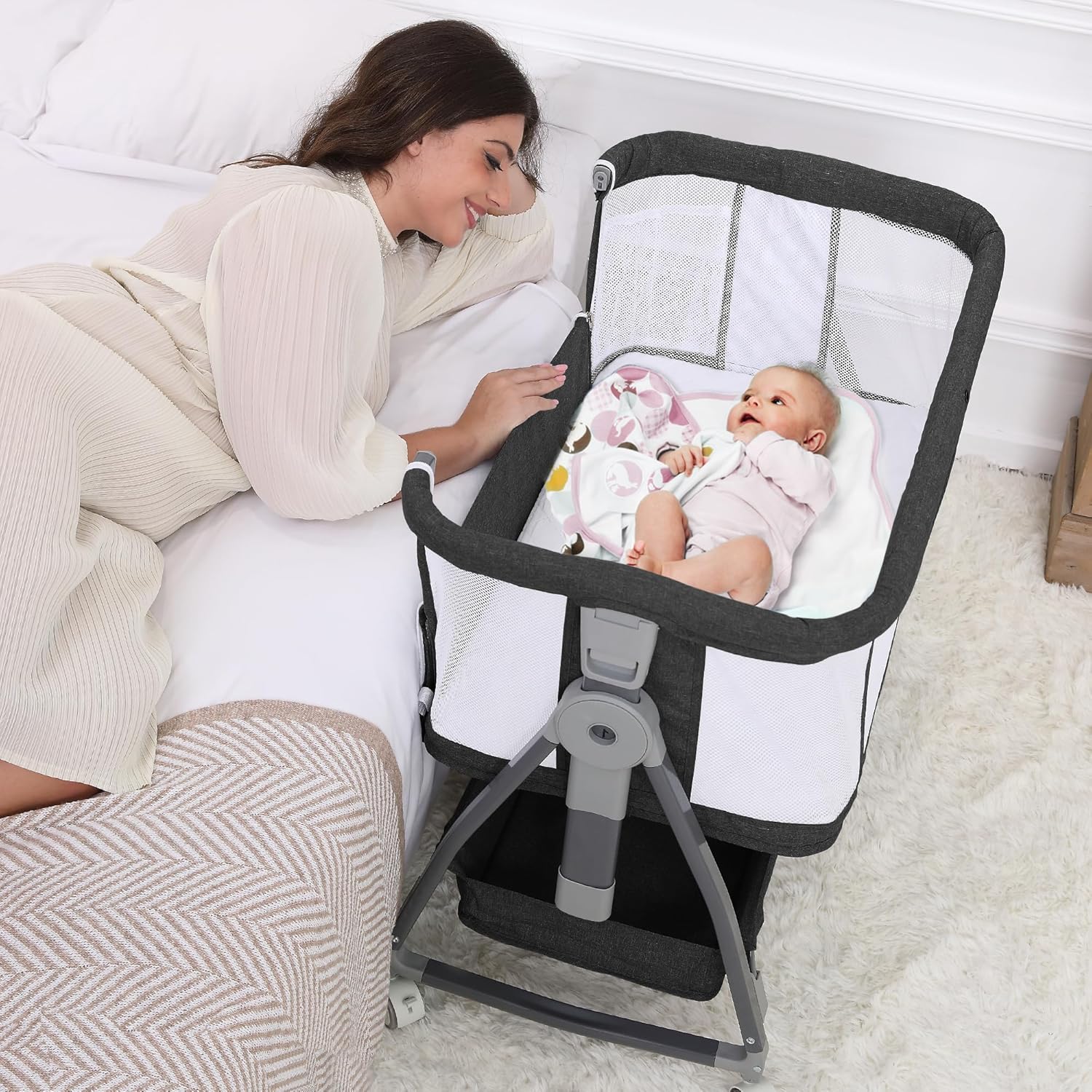 - 3 IN 1 BEDSIDE BASSINET FOR BABY: Luvkixen bedside bassinet for baby can function as a bedside sleeper, rocking bassinet or stand-alone baby crib. Easily switch between modes by adjusting the wheels or taking down the side bar. Plus, the lockable wheels ensure stability, giving you peace of mind while your baby sleeps.