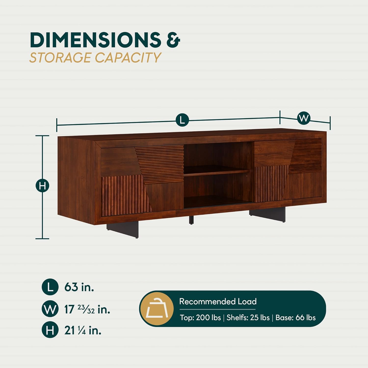 - DESIGNED FOR VERSATILITY IN TV STANDS: Unlike ordinary media consoles, the Trapeze stand offers open shelves and hidden compartments to keep devices and décor organized, enhanced by its timeless teak finish