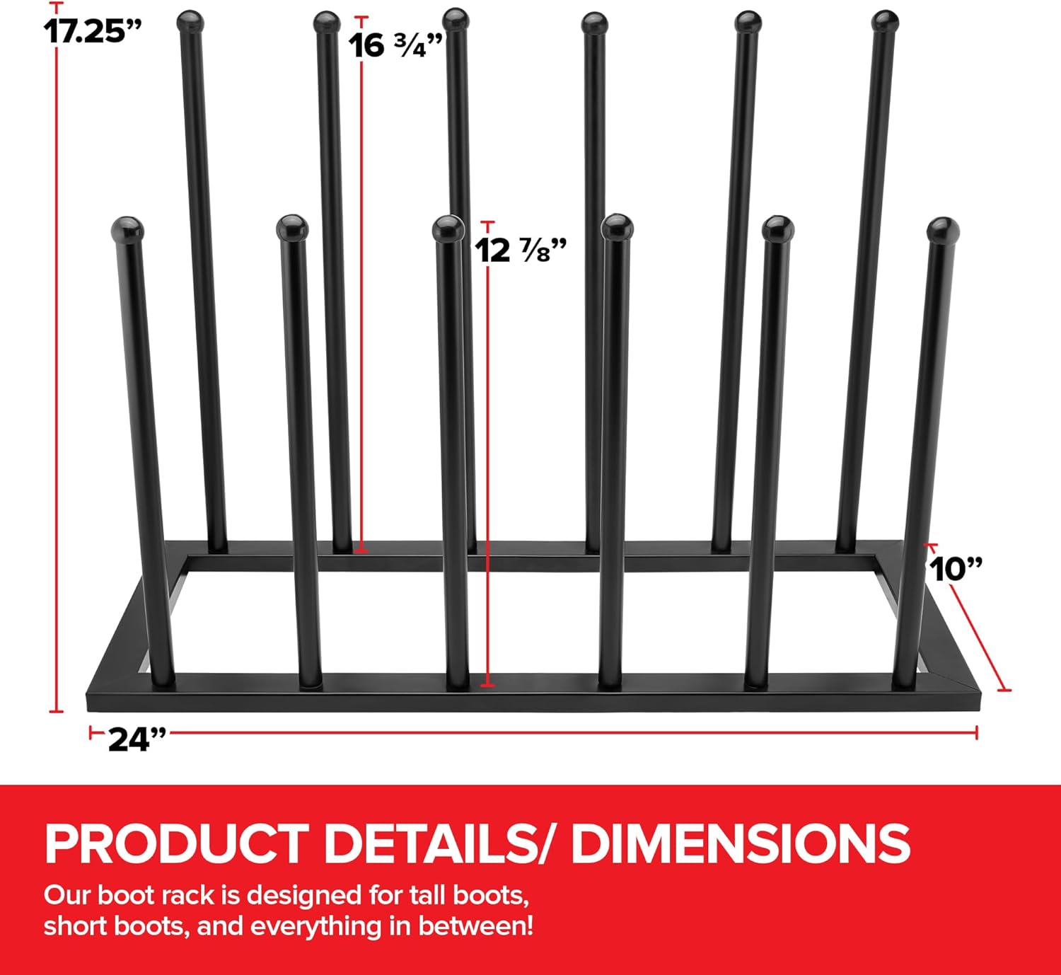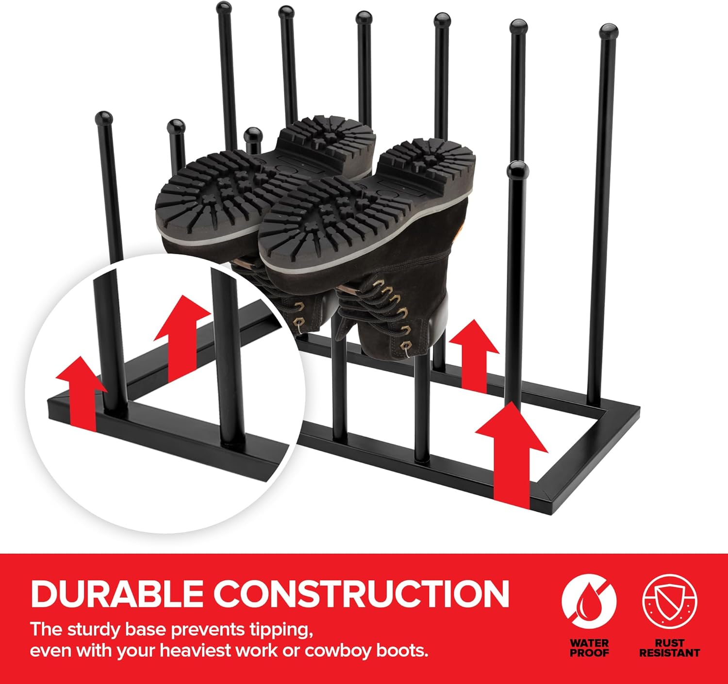 - Durable Construction: Crafted from sturdy, rust-resistant metal, our boot organizer for tall boots is a reliable choice for those who need indoor or outdoor boot storage. The sturdy base prevents tipping, even with your heaviest work or cowboy boots.