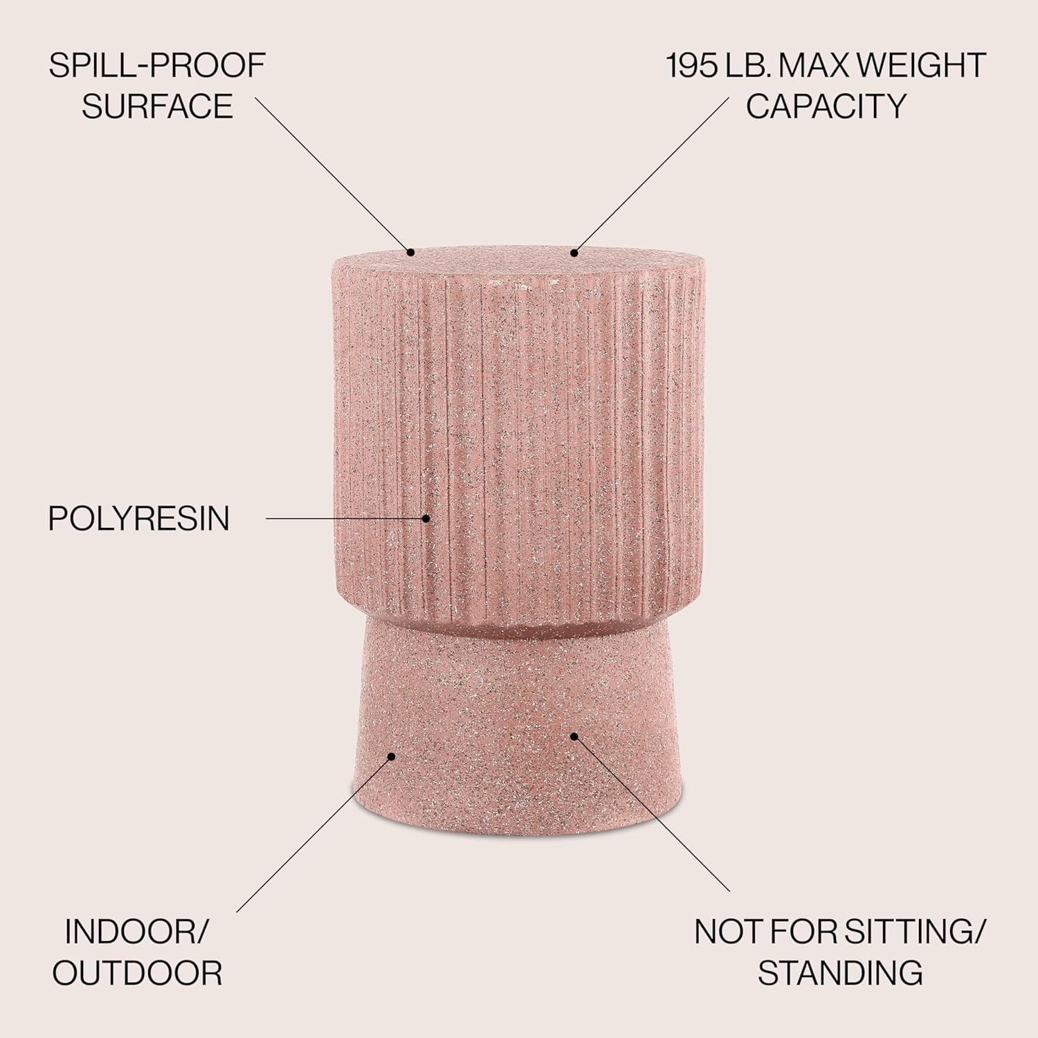 JONATHAN Y TBL1102C Louisa 19" Modern Art Deco Tambour Indoor/Outdoor Accent Table Art Deco, Minimalist, Contemporary, Bohemian, Mid-Century, Patio, Garden, Bathroom, Living Room, Pink Terrazzo Finish