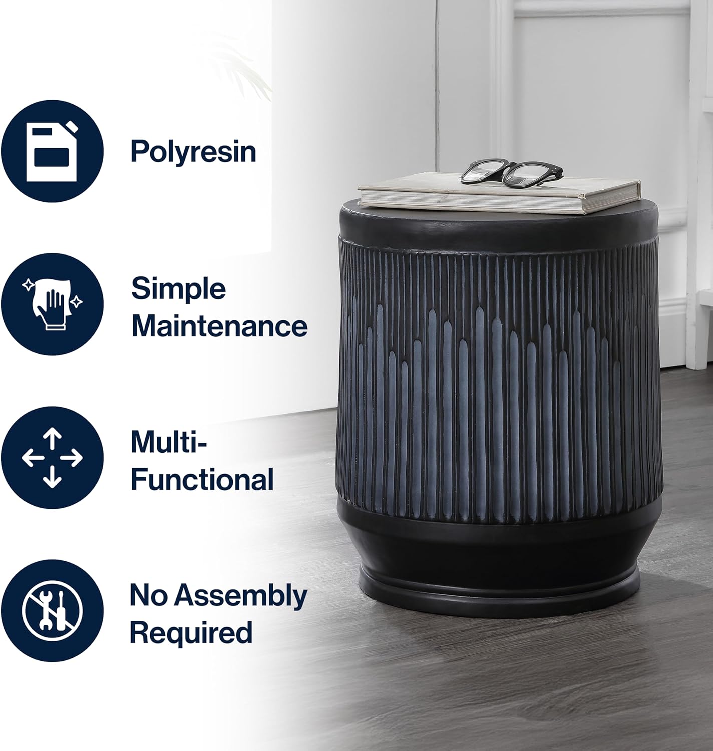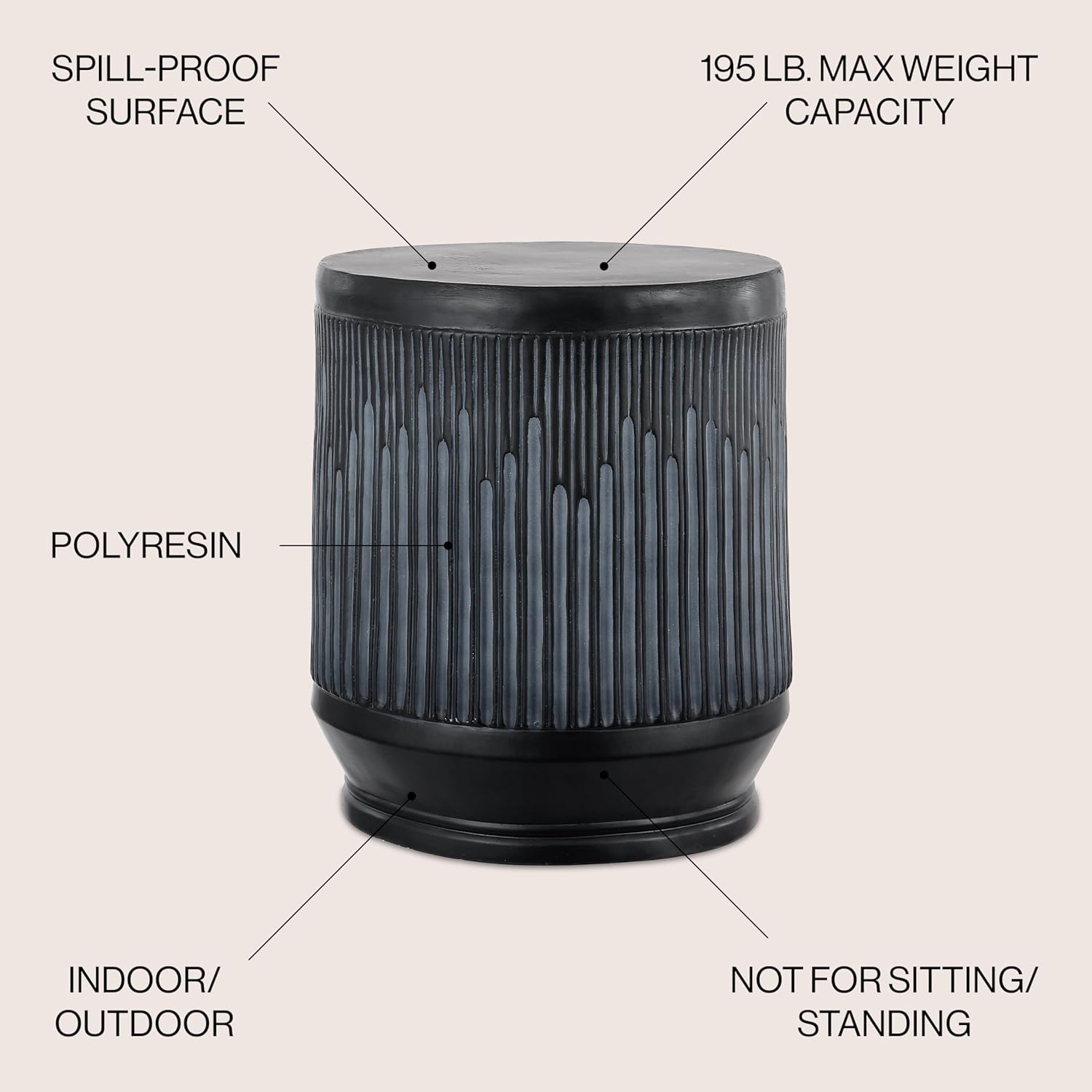 - A waterproof surface turns this contemporary stool into a versatile small drinks table or plant stand