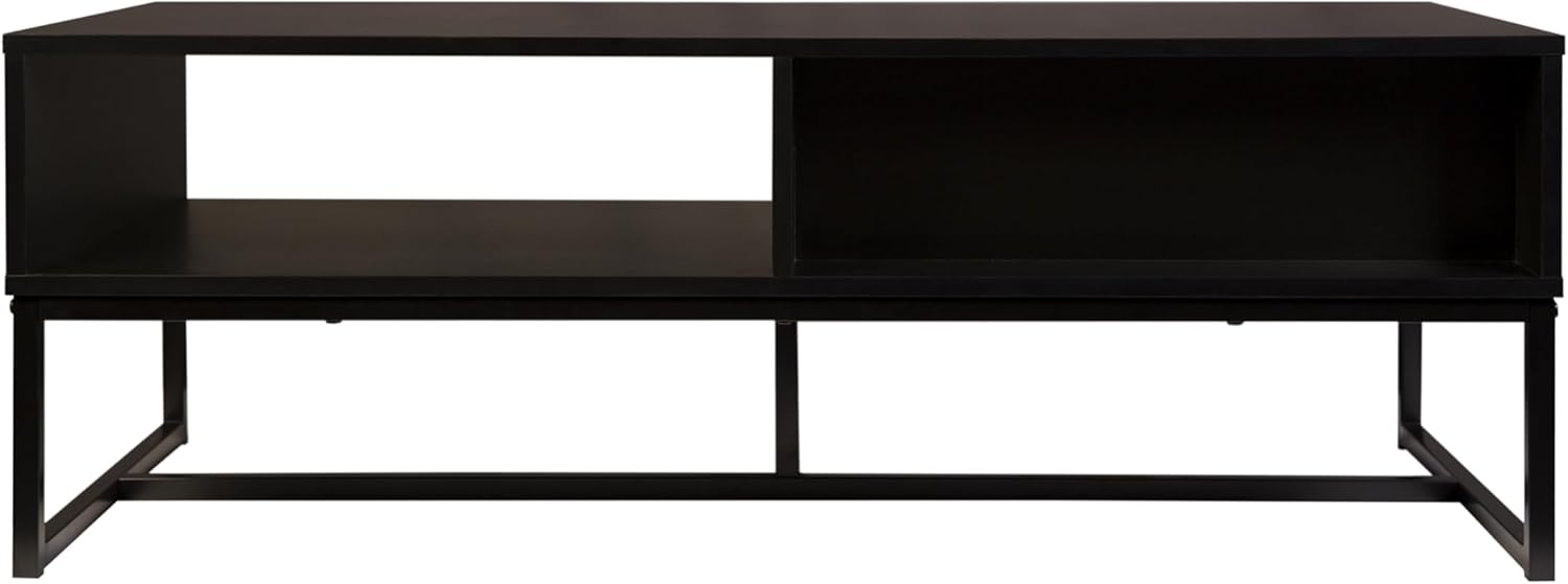 AC Pacific Bali Coastal Modern TV Stand with Storage Cubby and Natural Wood Drawer, Stylish and Functional Entertainment Center for Living Room or Bedroom, 47" Long, Black
