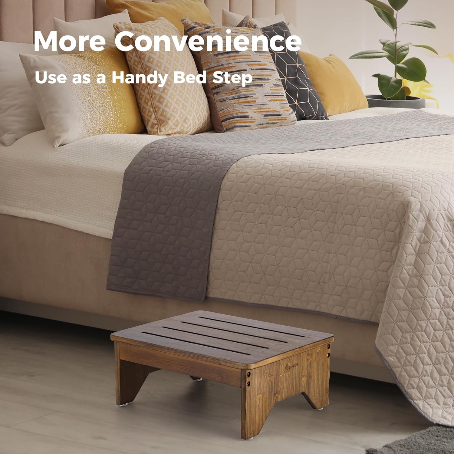 - Compact, Portable & Stylish Design – Lightweight yet sturdy, this bamboo step stool blends into any décor while offering portable convenience. Its compact size makes it easy to move from bedroom to bathroom, helping seniors as a bedside aid, kids as a learning stool, and adults as an ergonomic footrest.