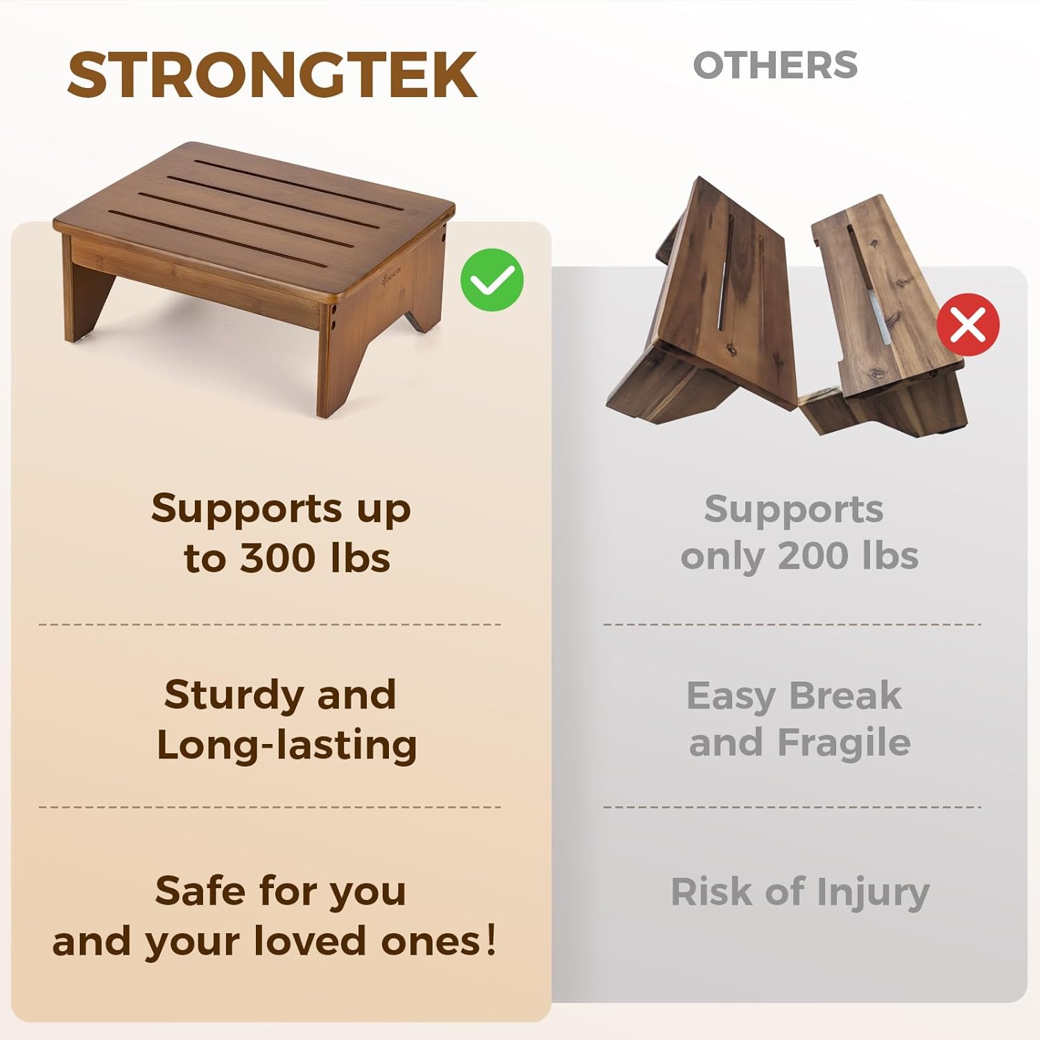 StrongTek Bamboo Bed Step Stool for Adults & Kids – Wide 16" Platform, 300 lbs Capacity, Non-Slip Drainage Surface, 6.5" Height Safe Bedside Stool, Bathroom Shower Step & Office Foot Rest (Walnut)