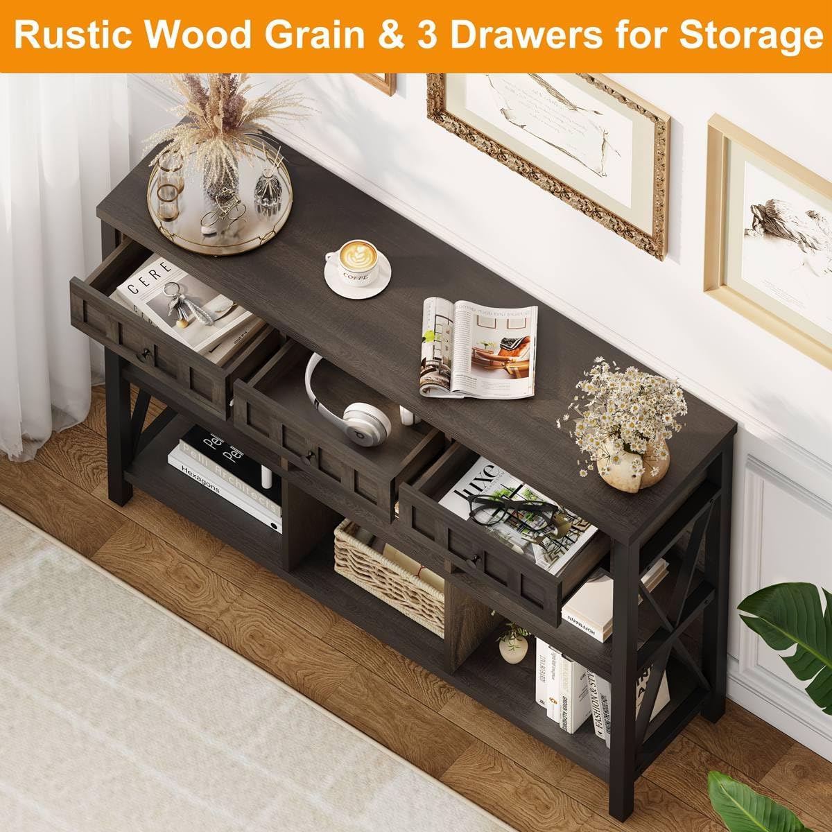 - [Industrial Rustic Design]: The combination of brown board and black metal frame flawlessly blends modern and traditional styles. The clean lines fused with industrial flair give this cube organizer a refreshing appearance that adds an on-trend touch to your room, inspiring you to enjoy your moments at home