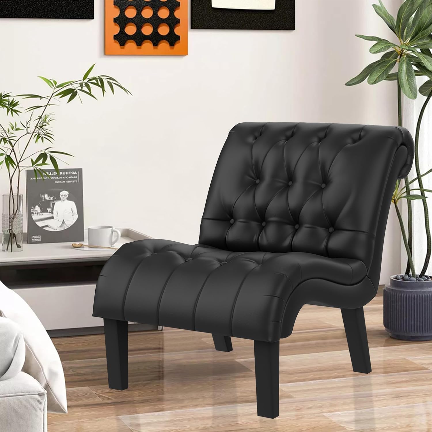 Yongqiang Black Faux Leather Accent Chair Modern Button Tufted Upholstered Armless Chair for Bedroom Living Room with Wood Legs