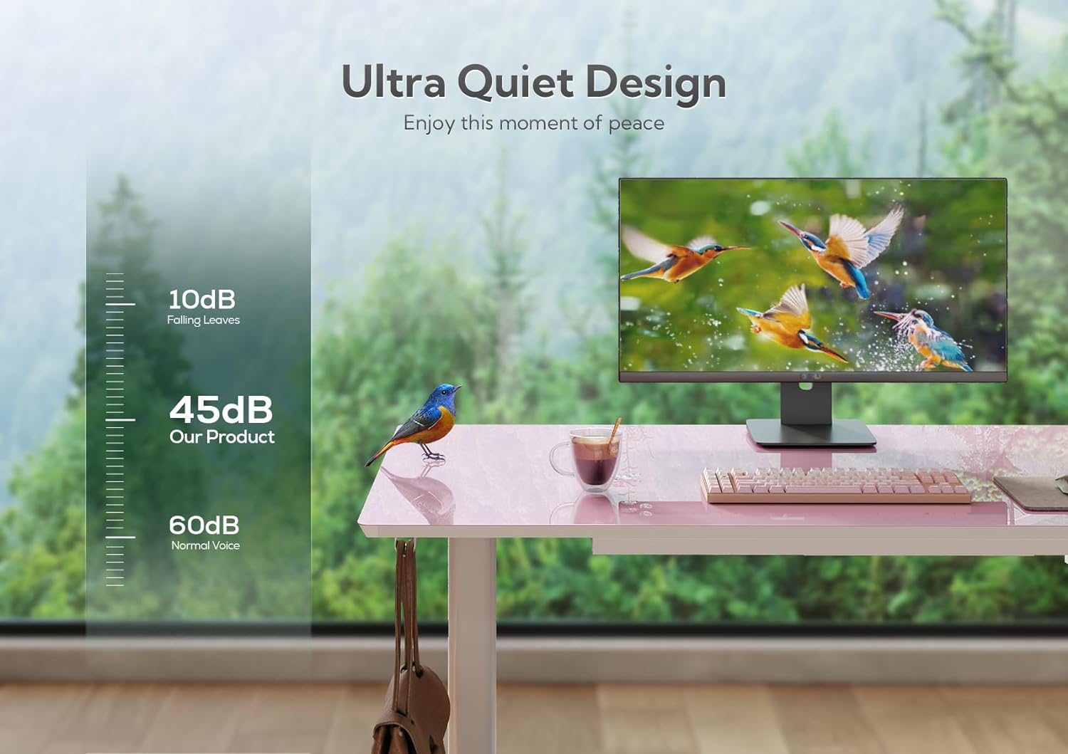 - Unique Color Design: The glass version of the electric height-adjustable desk features a design with a Morandi Powder desktop, showcasing a delicate and fashionable aesthetic. By incorporating the pink color scheme into the transparent glass material, the entire tabletop appears fresh and comfortable.