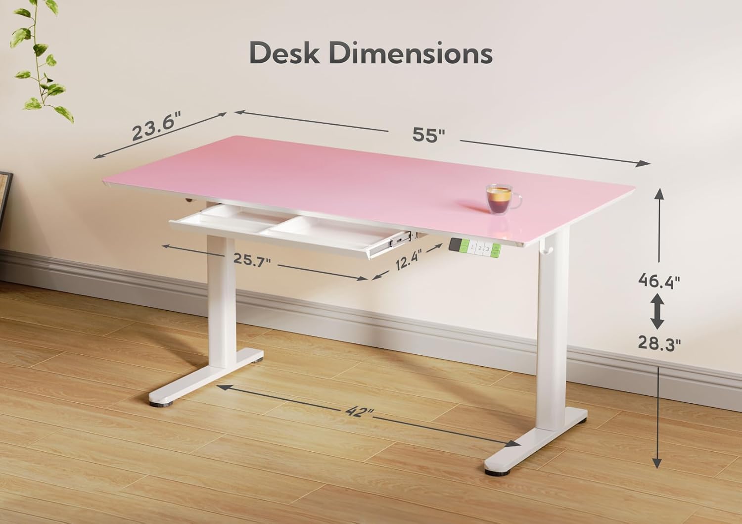 - Electric Height Adjustment: The glass version of the electric height-adjustable desk offers the convenience of electrically adjusting the height (28.3"-46.4") to accommodate different heights and work needs. This design not only benefits users but also promotes a healthier working posture.