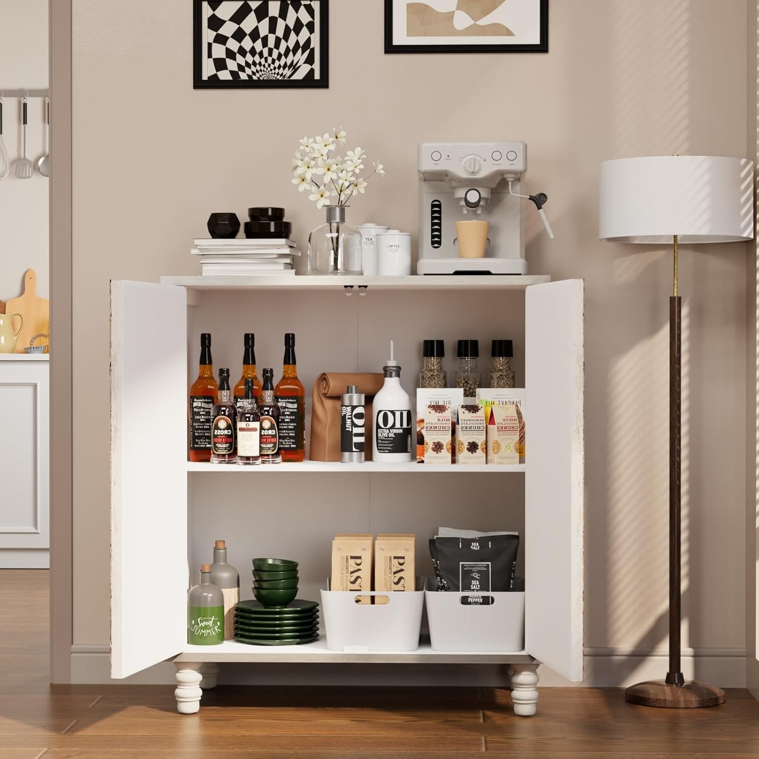 - Enough Storage: There is plenty of room inside the buffet cabinet with storage, complementing a detachable internal shelf. This style of shelving gives the accent cabinet flexible storage space, which eliminates any limitations of the stuff, regardless of the shape or sides. You can also include your customized storage compartments to work with, especially if you are working to store small accessories.