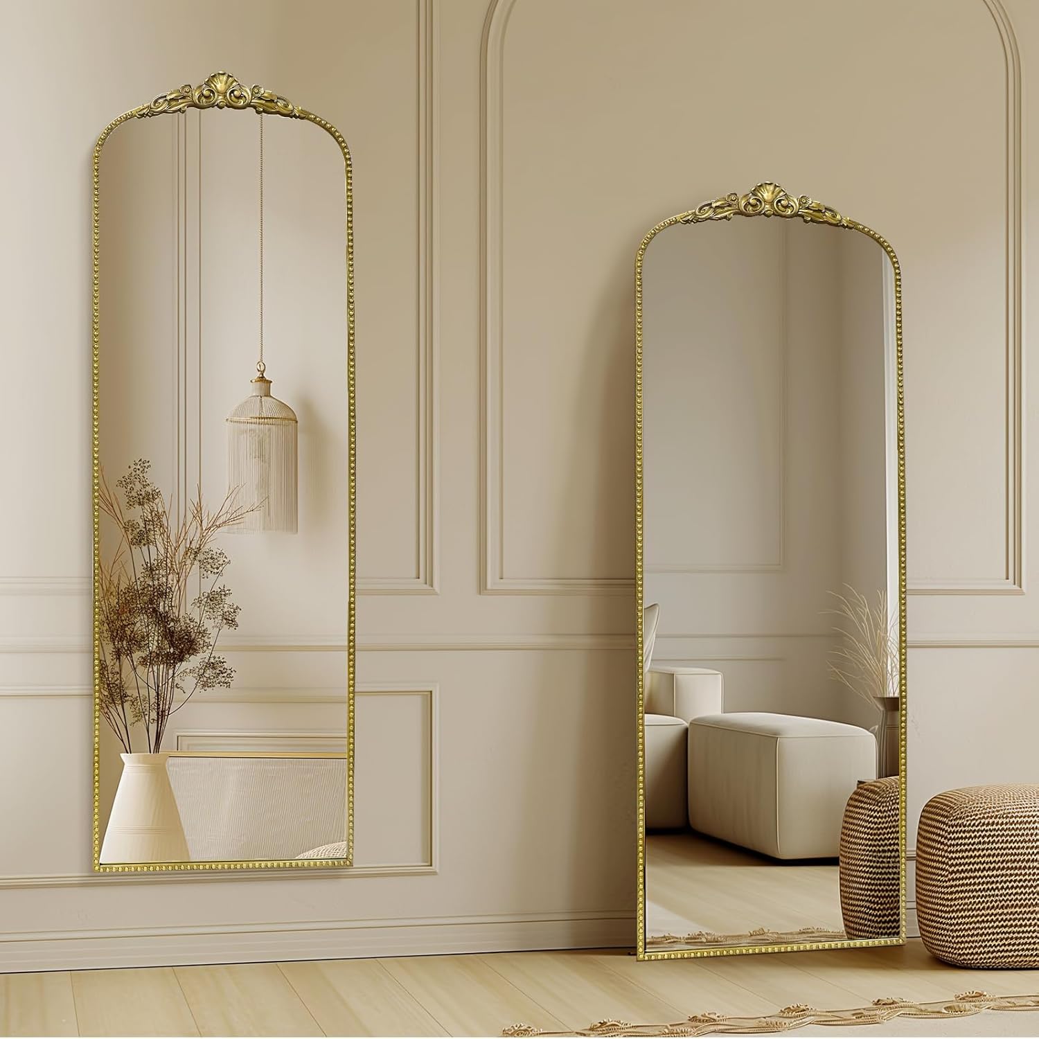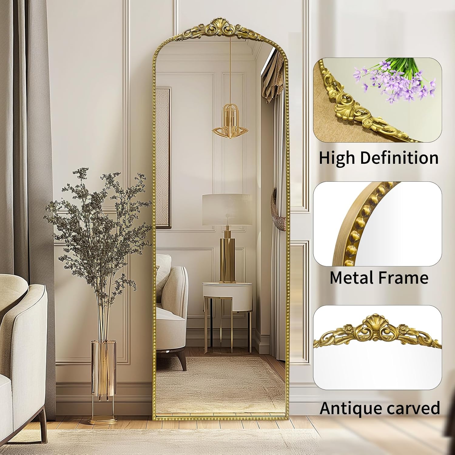G-LEAF Vintage Full Mirror 22"X65", Victorian Antique Baroque Mirror with Brush Gold Ornate Metal Frame for Fireplace Entryway Living Room Hallway Bathroom