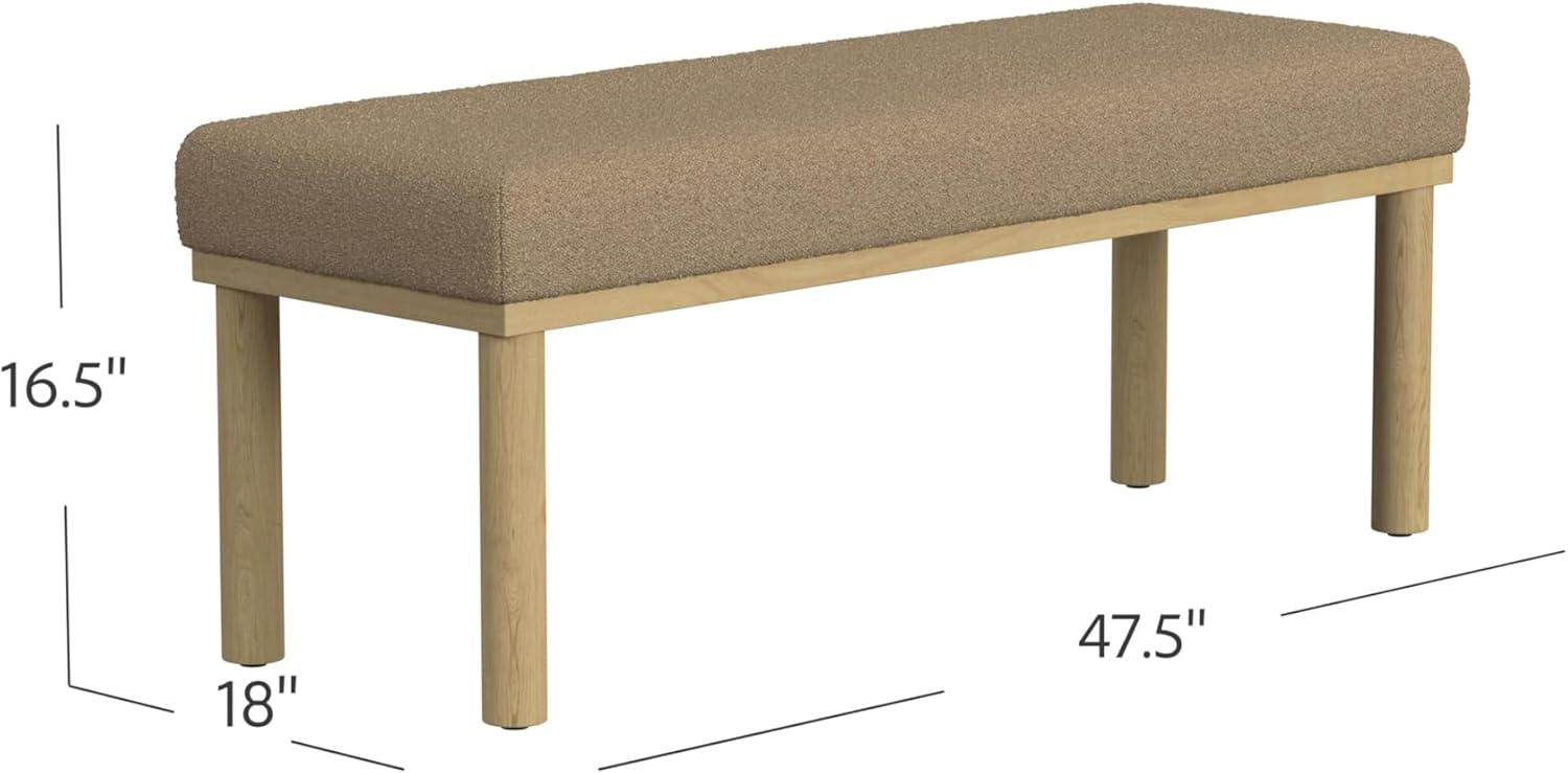 - OTTOMAN BENCH: Featuring a classic brown boucle with the natural wood styling of the round legs. Our decorative bench is often used as an coffee table ottoman or for extra seating in your living room