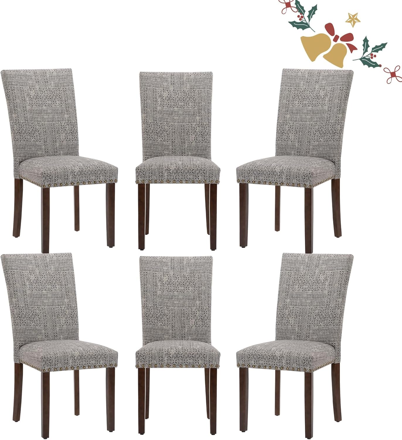 Parsons Dining Chairs Set of 6, Upholstered Nailhead Dining Room Kitchen Side Chair with Thick Cushions and Wood Legs, Black/White