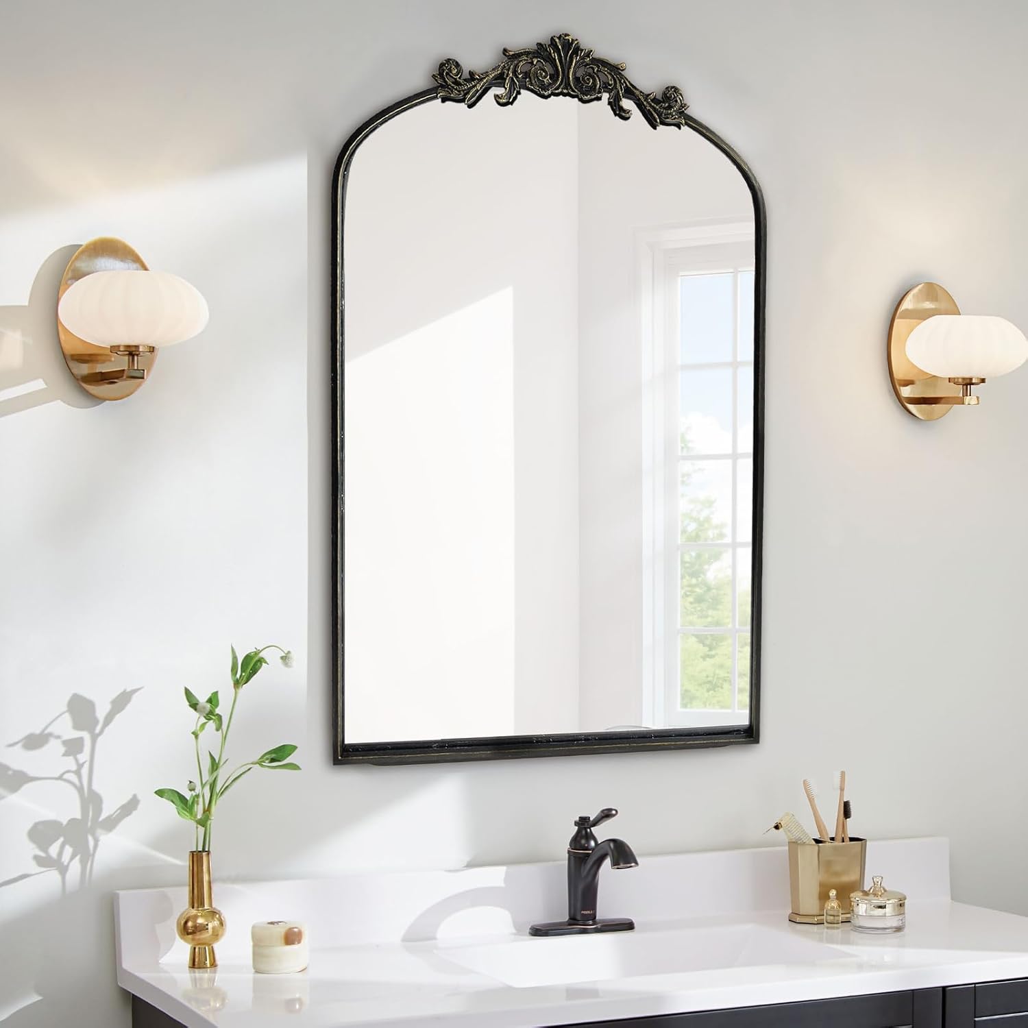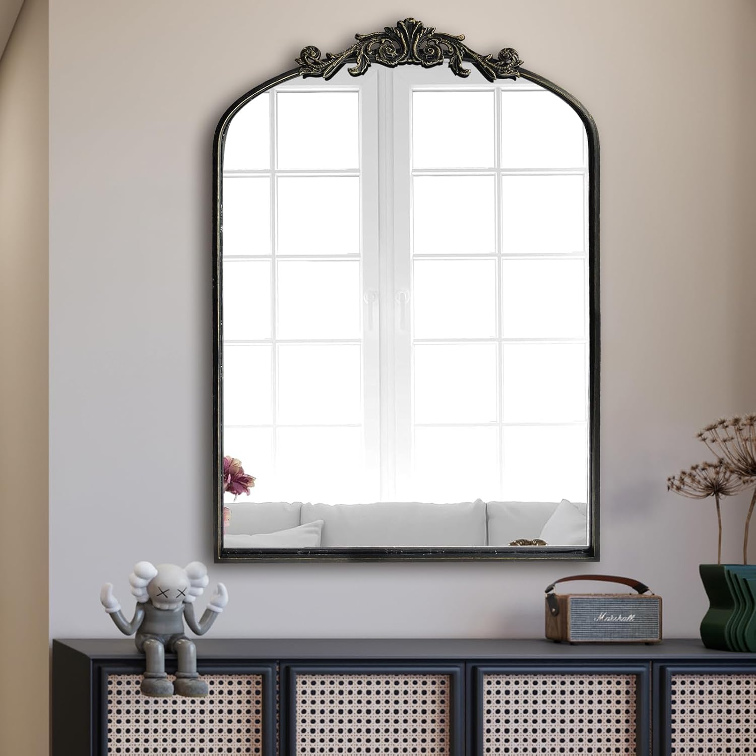 WAMIRRO Ornate Black Mirror,Vintage Arched Baroque Antique Mirorrs for Living Room Hallway Fireplace Bathroom Entryway 24"X36"