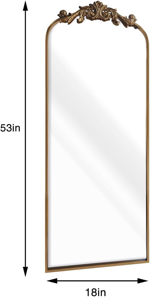 WAMIRRO Ornate Gold Mirror,Vintage Arched Antique Floor Mirrors for Living Room Hallway Fireplace Bathroom Entryway 18"X53"