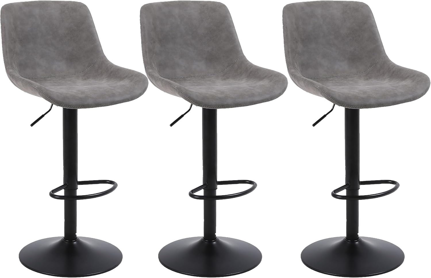 Bar Stools, Swivel Counter Height Barstools with Back, Adjustable Modern Bar Chairs, Tall Armless PU Leather Kitchen Island Stool (Grey, Set of 3)