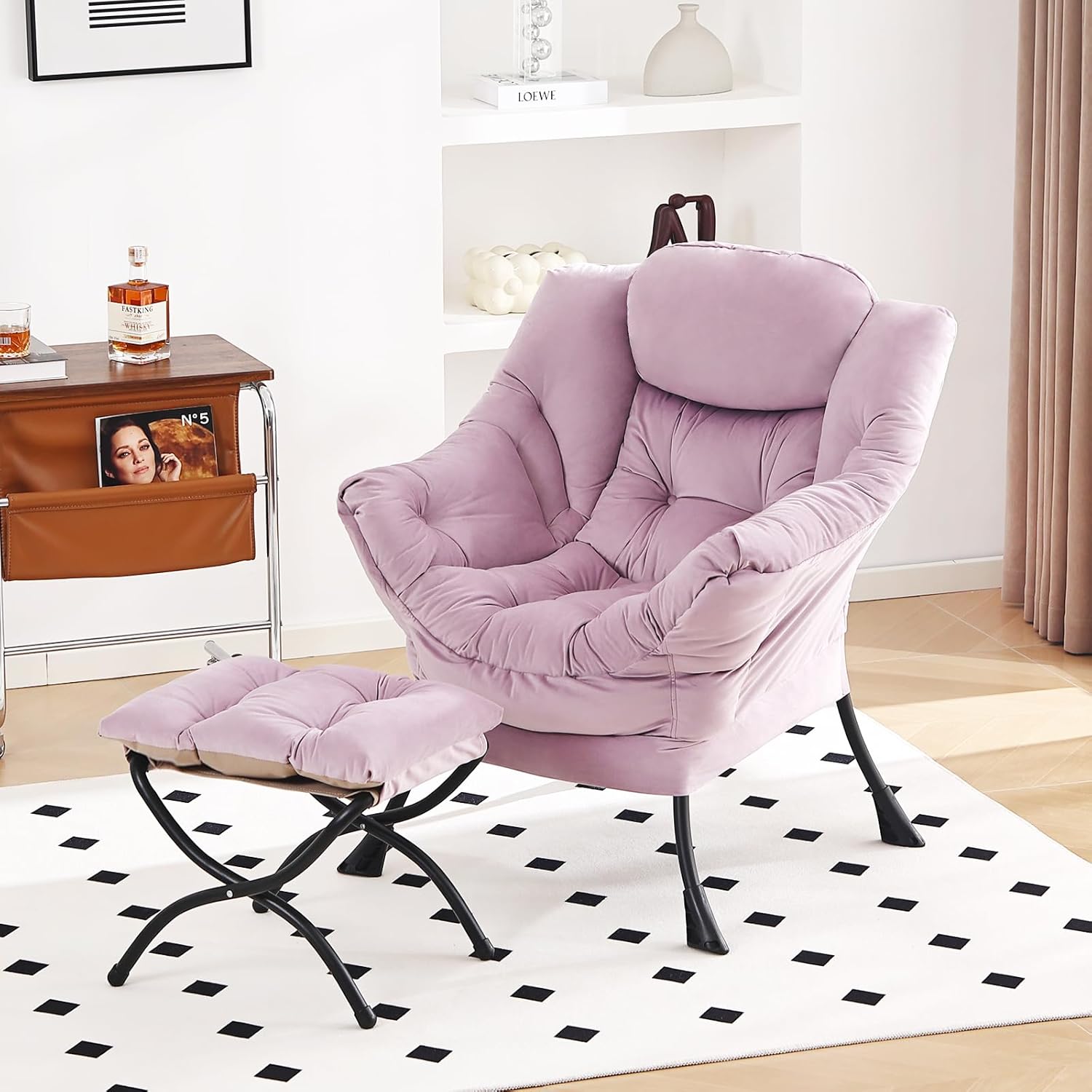 - ✨Comfy Accent Chairs with Ottoman: Enjoy the ultimate lounging experience with accent chairs. The ergonomic headrest offers exceptional head and neck support, allowing you to fully unwind and enjoy your leisure time. The chair features armrests and a convenient side pocket for your mobile phone, magazines, or books.