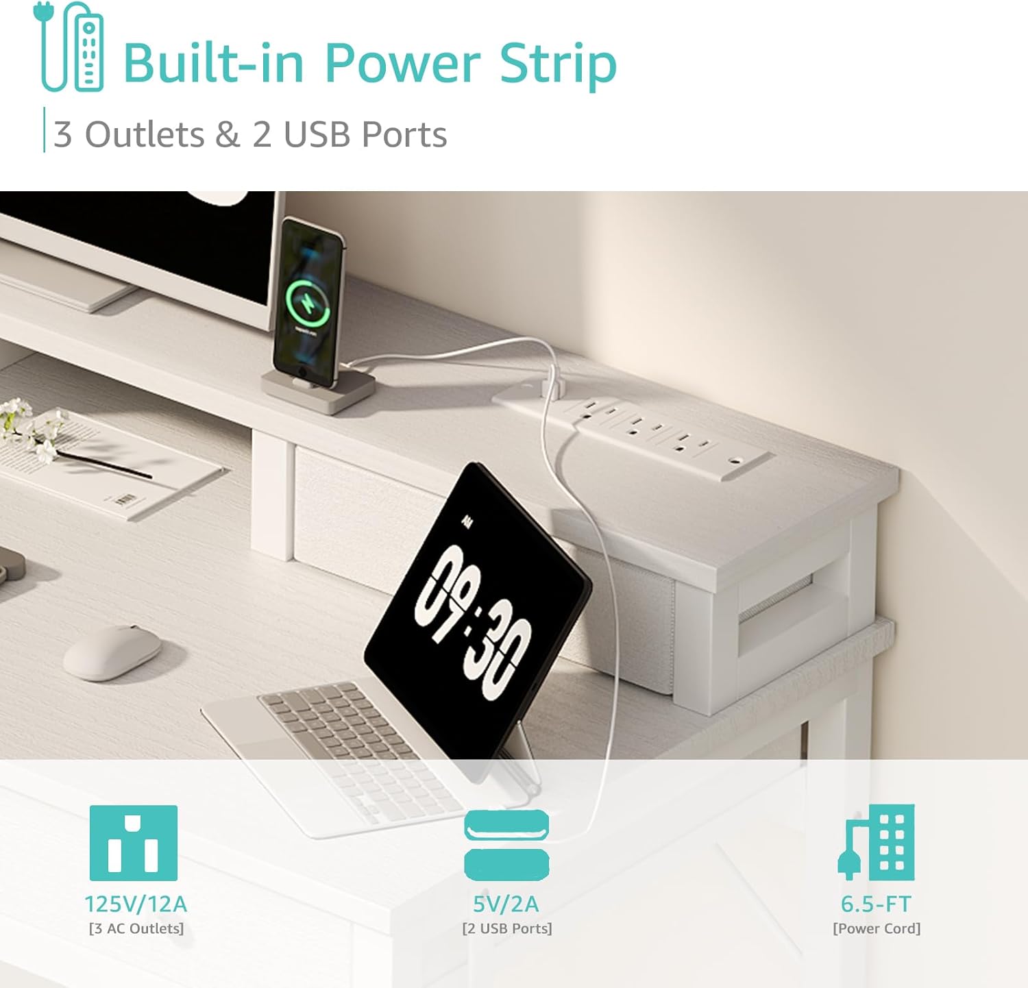 - Safety Multi-functional Power Strip: The computer desk includes a built-in power strip with 3 power outlets & 2 USB charging ports for your computer, monitor, gaming gear, pad, phone and other electronic devices.