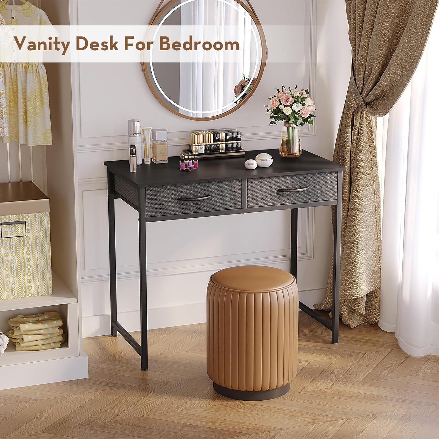 - 【Desk with Fabric Drawers】The small computer desk is designed with 2 pull-out fabric drawers, providing enough storage space for pens, books, jewelry and other small daily items, which can meet your storage needs and also keep your office or study supplies organized.