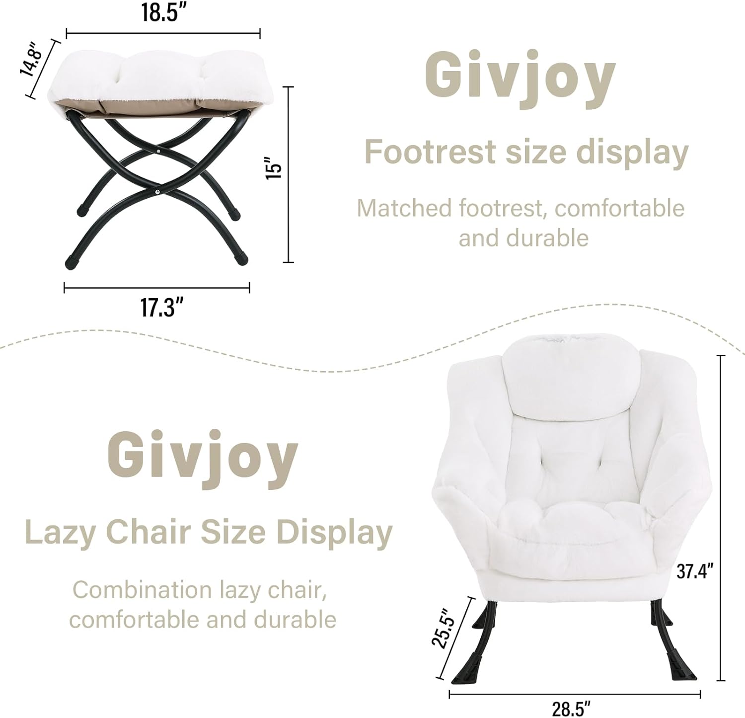 Cozy Lazy Chair and Ottoman, Large Contemporary Accent Lounge Chair Set, Leisure Upholstered Reading Armchair for Bedroom, Living Room, Dorm Rooms, Office