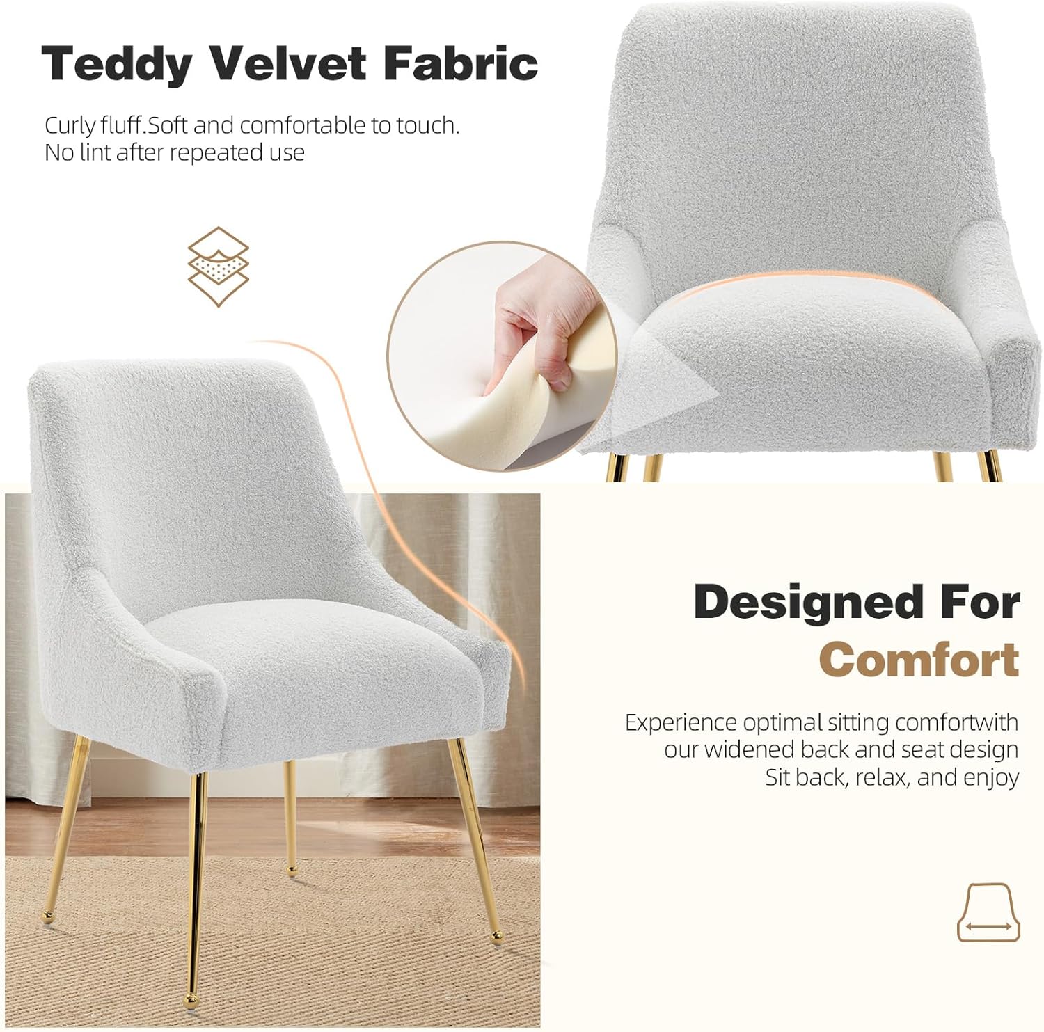 Dining Chairs Medieval Modern Restaurant Chairs, Soft Cushions, Teddy Velvet, Polished Gold Metal Legs, Kitchen Chairs, Living Room White 2-Piece Set