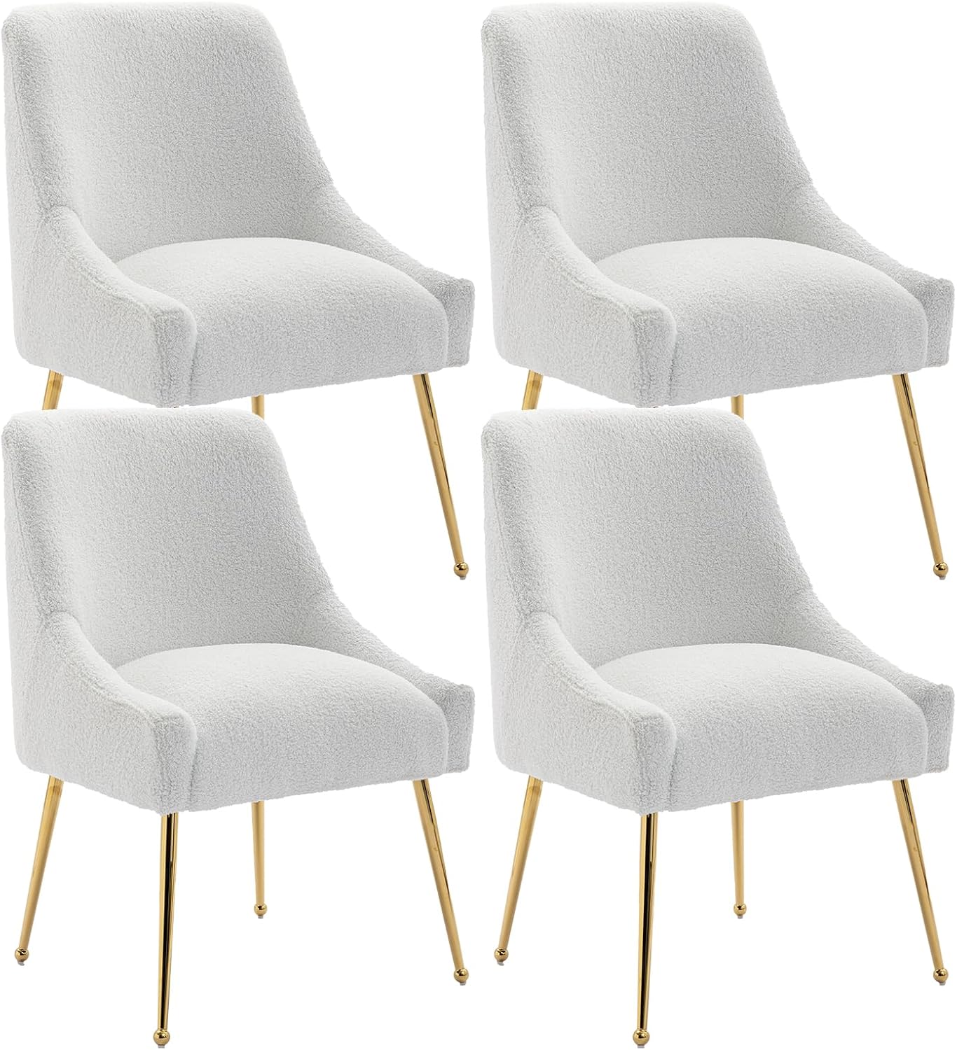 Dining Chairs Medieval Modern Restaurant Chairs, Soft Cushions, Teddy Velvet, Polished Gold Metal Legs, Kitchen Chairs, Living Room White 4-Piece Set
