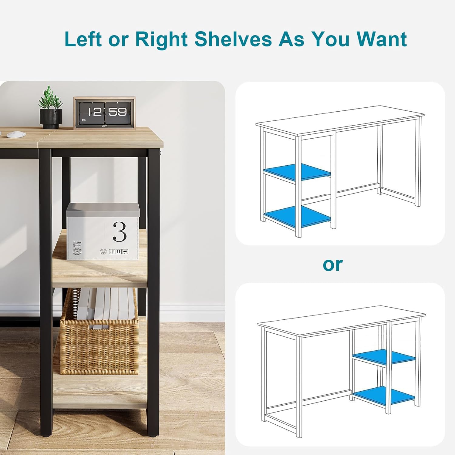- Stable and Convenient:You can adjust the beams under the computer desk according to your needs, installed in different directions, the shelves are oriented differently. You can easily adjust whether the shelf is on the left or right side. More choices for you. The home office desk is absolutely stable and sturdy, ensuring you enjoy working on this desk.