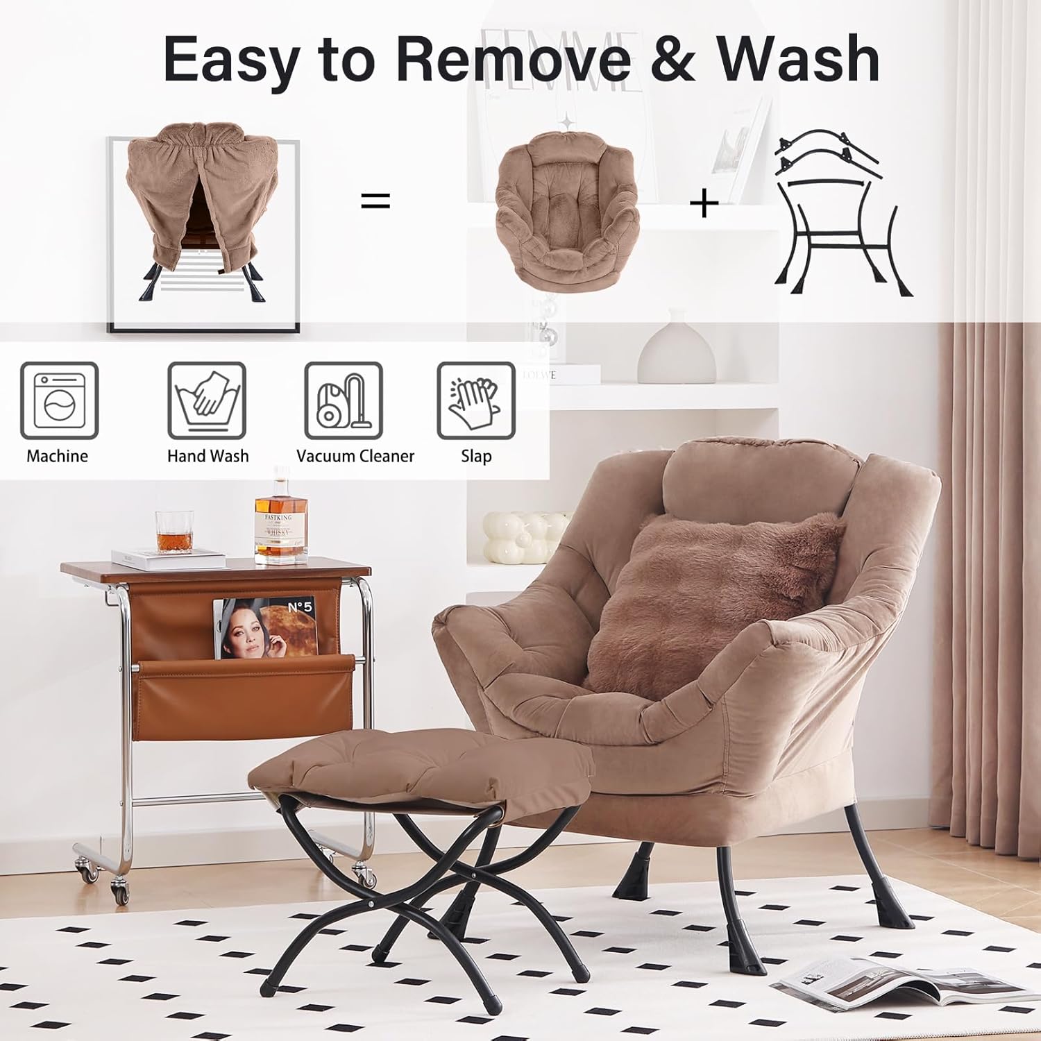 - 【EASY ASSEMBLY】Our lazy chair with ottoman offers a experience, thanks to this comfy chair’s user-friendly design. With clear, illustrated instructions and no need for extra tools, setting up your relaxation easy.