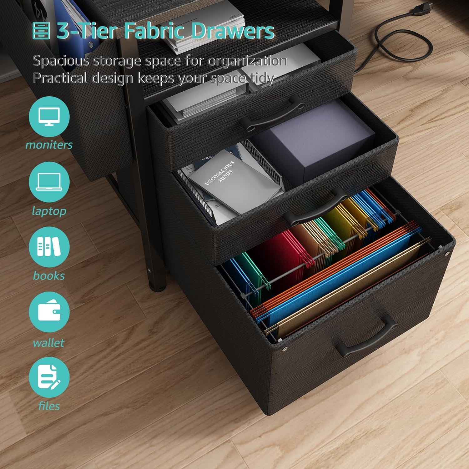 - Versatile File Cabinet And Drawers: Computer desk with 3 ππππ§ππ πΏπ§ππ¬ππ§π¨, the addition of this feature renders the desk lightweight and facilitates its mobility. One versatile file cabinet keep everything you need well organized and easily accessibleοΌ the adjustable file drawer is suitable for hanging legal size or letter size files. Two small drawers offers storage solution to your home office supplies.