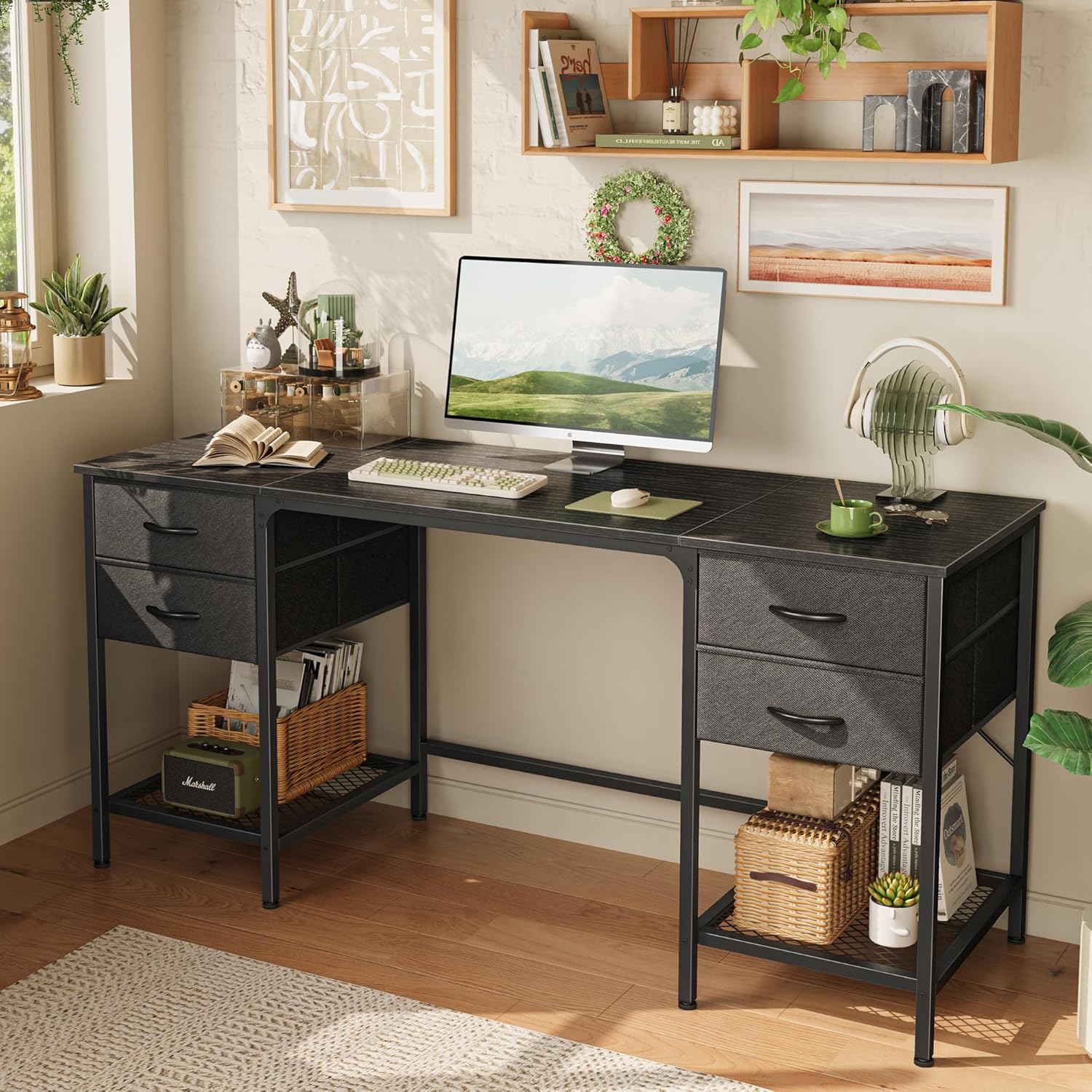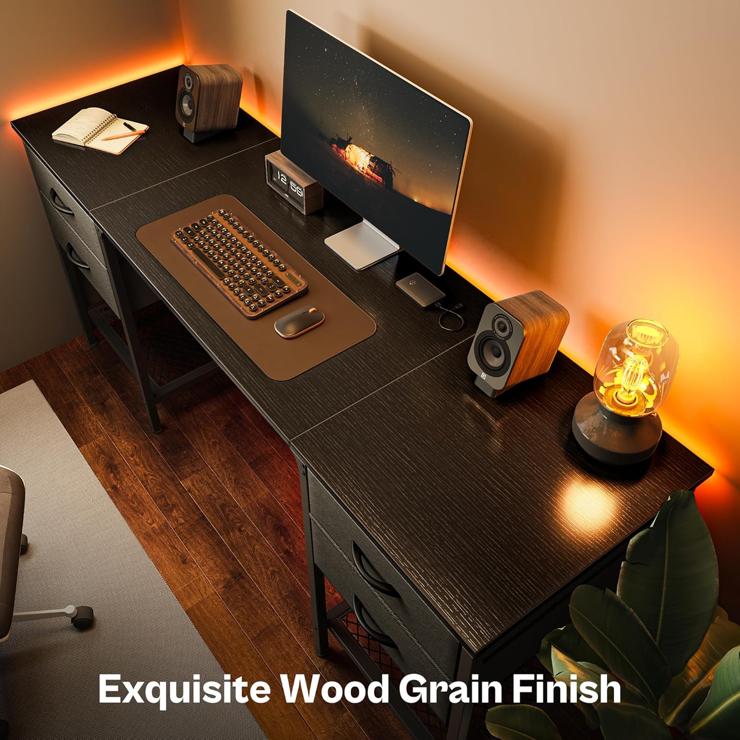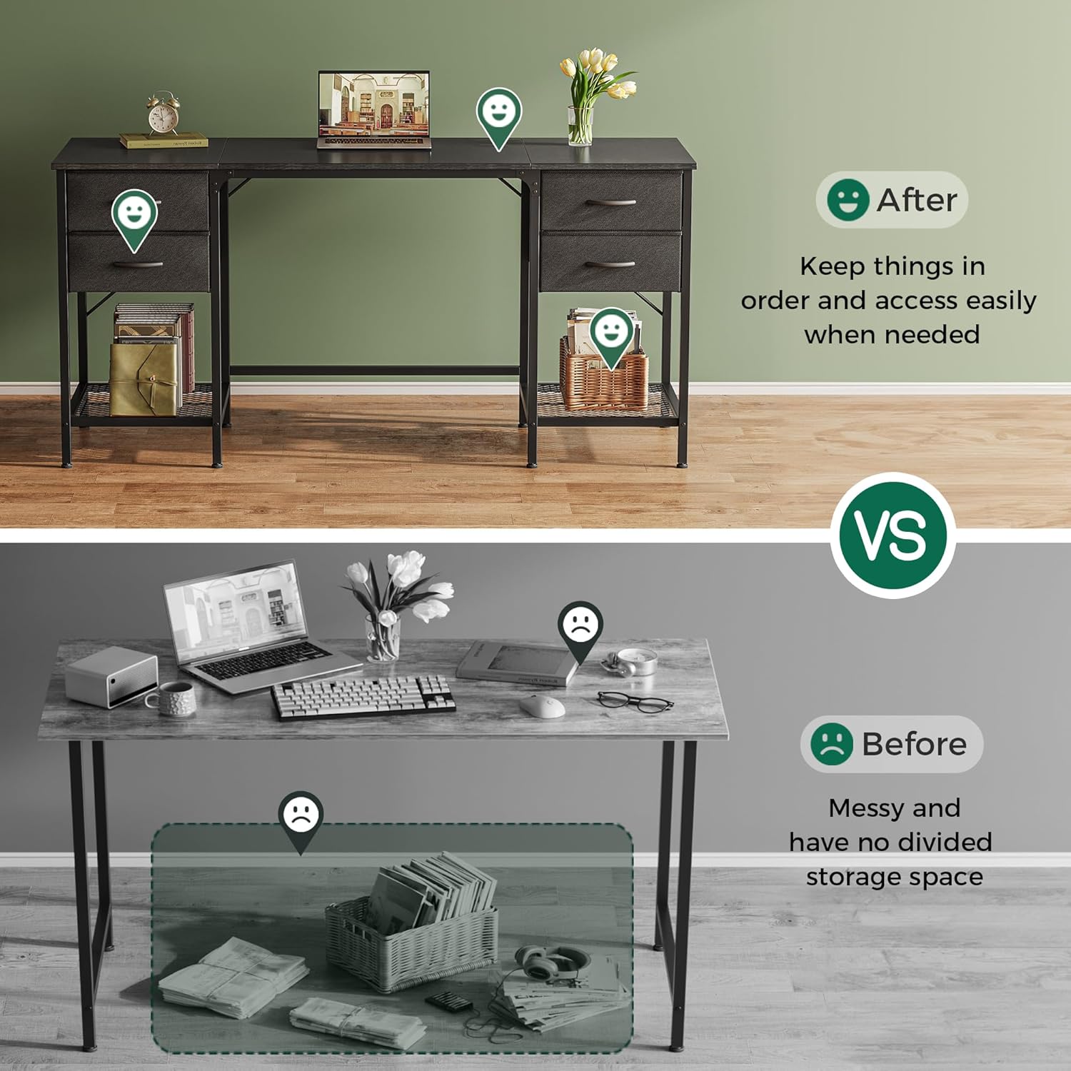- 【4 Drawer Desk with Storage】Set up a workstation with multiple storage. Features 4 fabric drawers, whether it's office supplies, important documents, or personal items, you can keep everything neatly stored away. Create a clean space for your work-from-home days