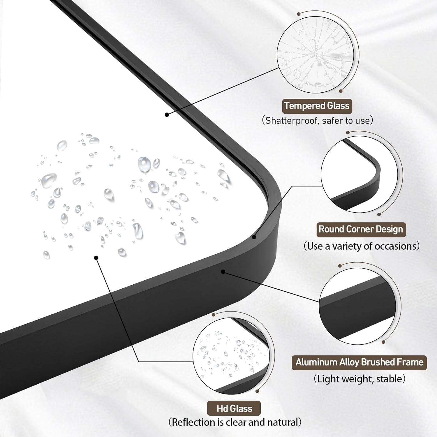 - 【Crystal Clear Reflection】The rectangular mirror uses 4-layer float technology to provide crystal clear reflection, ensuring you see every detail accurately, making it an essential tool for grooming and styling. And the square mirror is made of 5mm tempered glass, which is shatterproof and explosion-proof to protect you and your family.