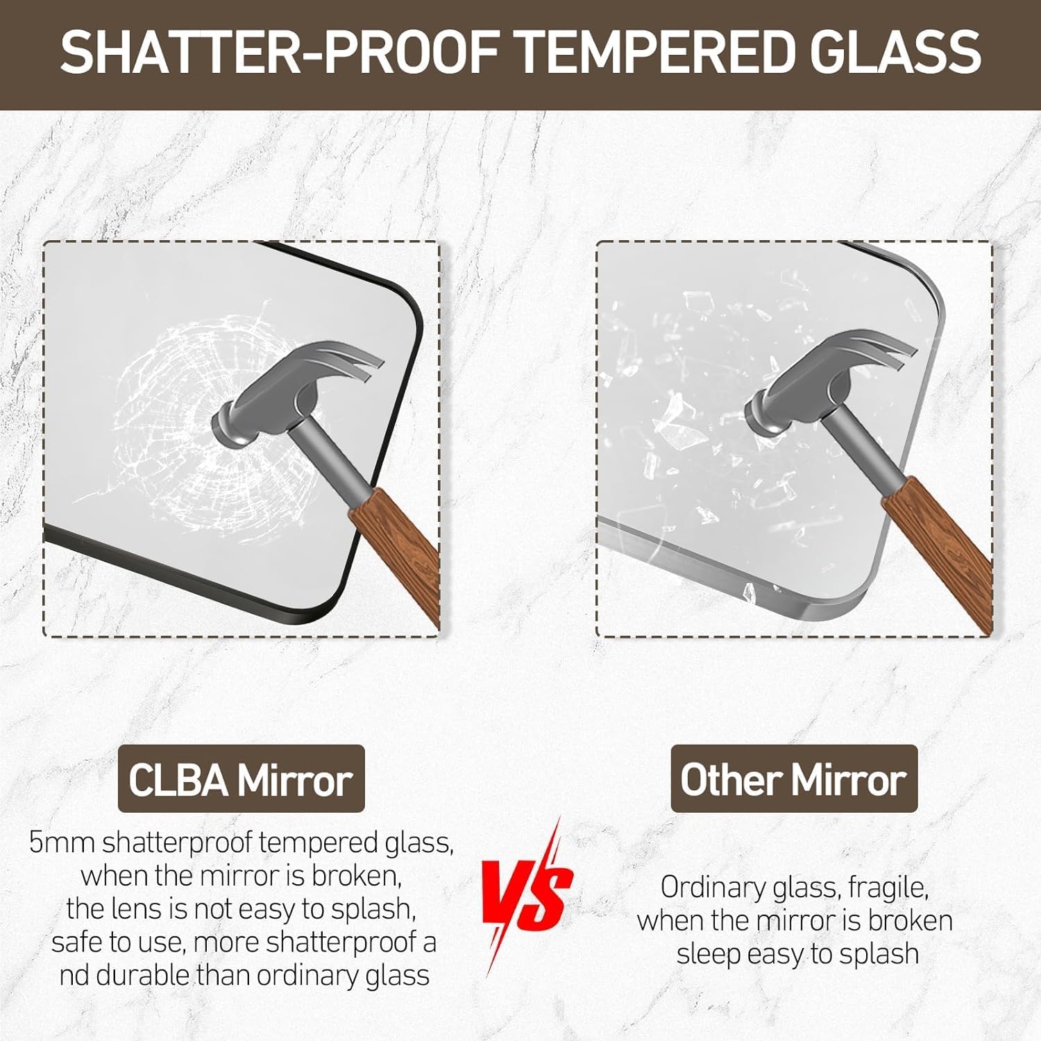 - 【Crystal Clear Reflection】The rectangular mirror uses 4-layer float technology to provide crystal clear reflection, ensuring you see every detail accurately, making it an essential tool for grooming and styling. And the square mirror is made of 5mm tempered glass, which is shatterproof and explosion-proof to protect you and your family.